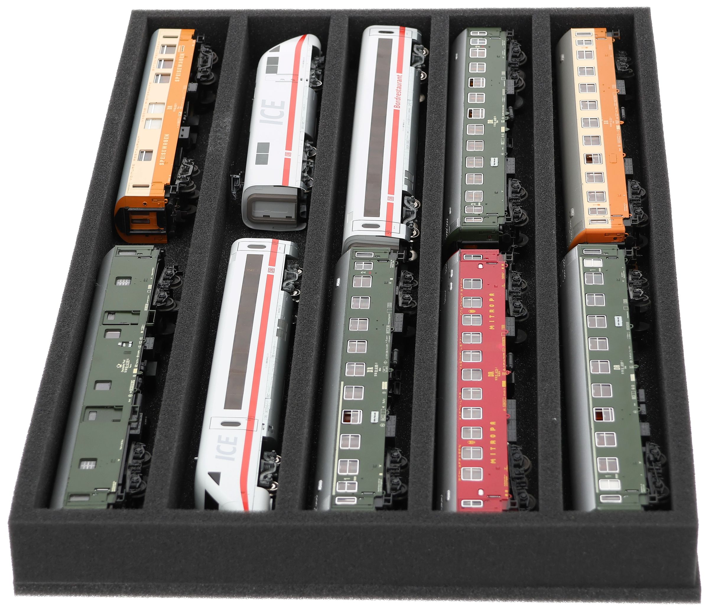 DS050A002 Foam inlay H0 Gauge - horizontal - 5 slots for model railway locomotives, wagons and vehicles