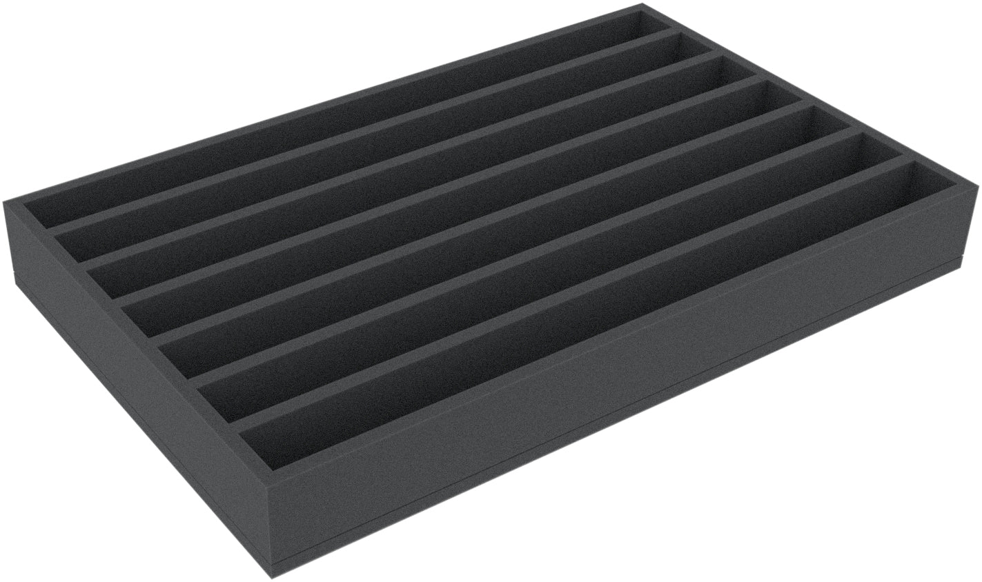 The Double-Size foam tray has the dimensions: 550 mm x 345 mm x 65 mm total height (55 mm usable height + 10 mm foam base).