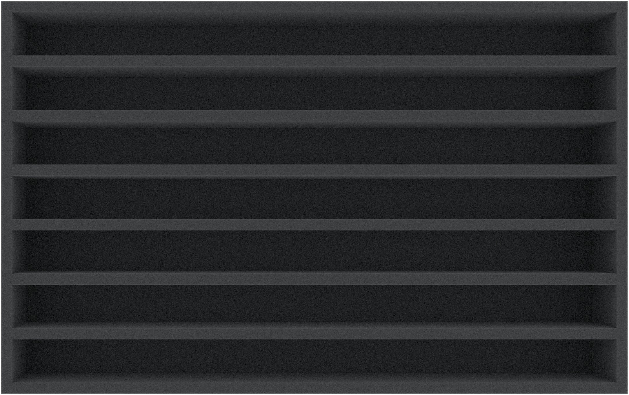 Universal foam insert with 7 long compartments, each 38 mm wide.