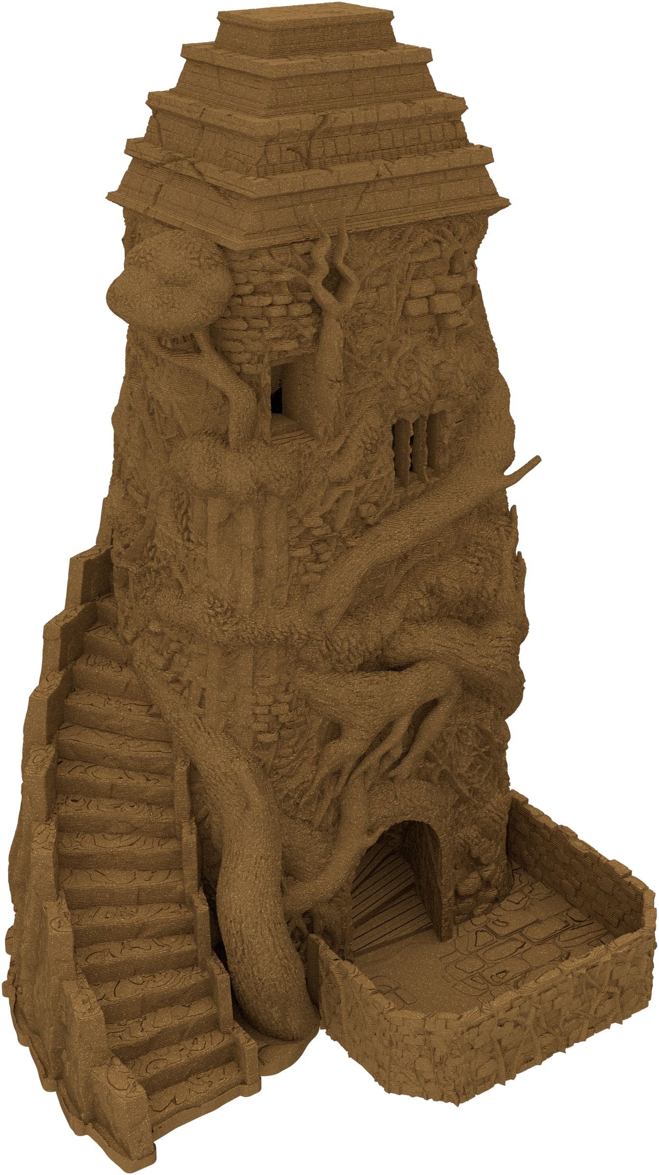3D printed, detailed dice tower, with removable roof and exchangeable dice tray. The Dice Tower can also be used as a terrain part for your miniatures game or as a center piece for your next DnD session.