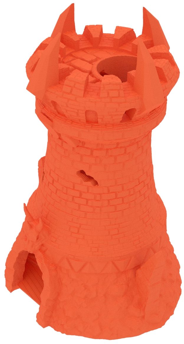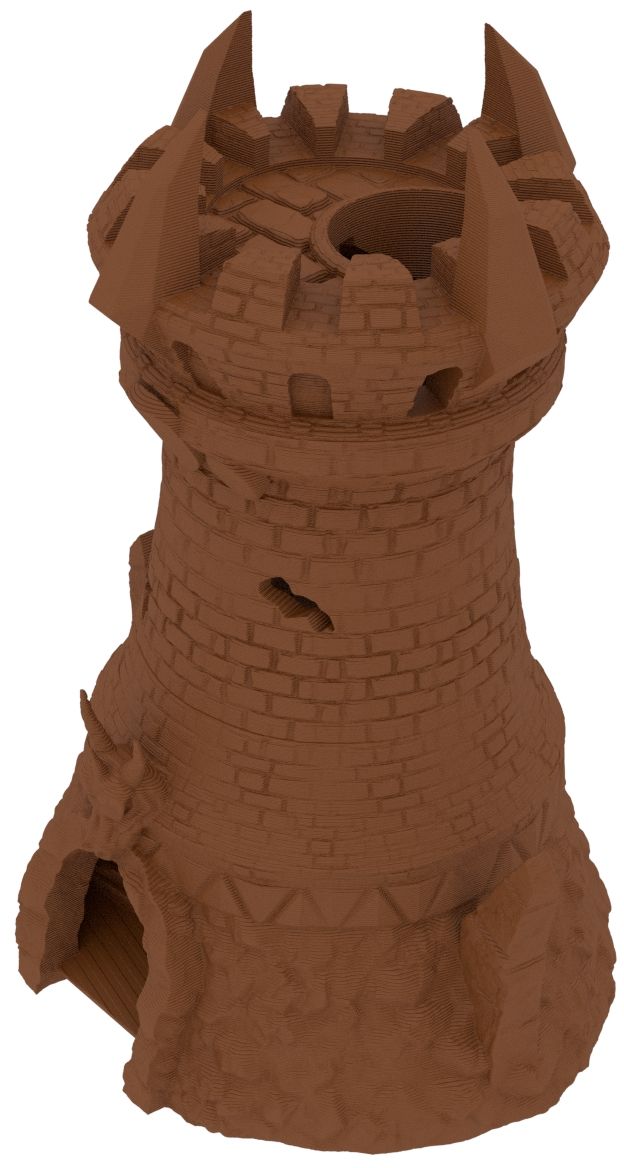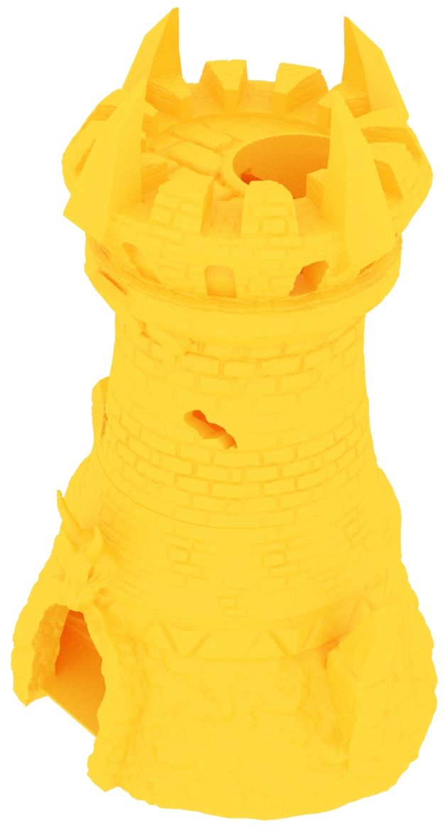 3D printed - detailed dice tower, with removable roof and exchangeable dice tray. The Dice Tower can also be used as a terrain part for your miniatures game or as a center piece for your next DnD session.