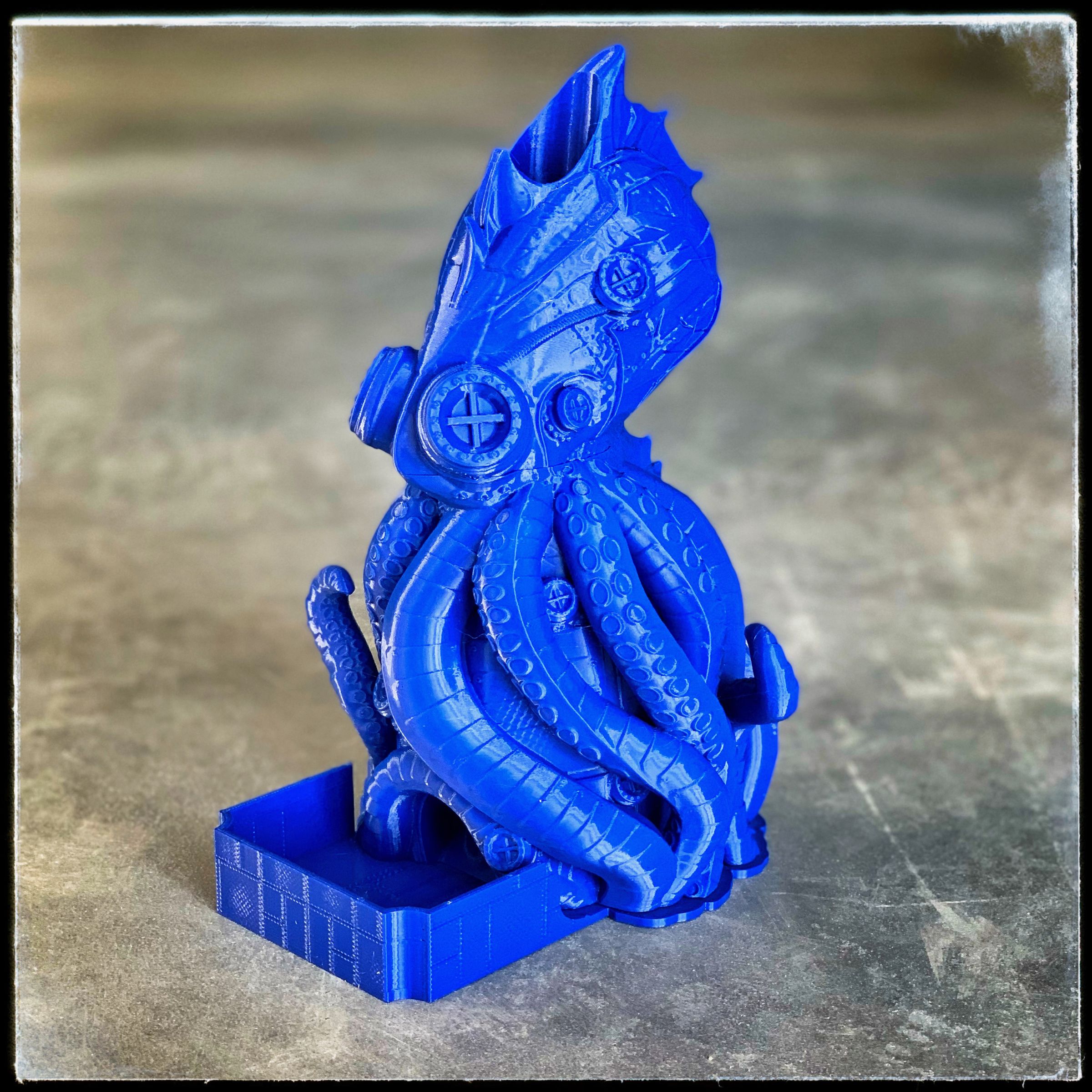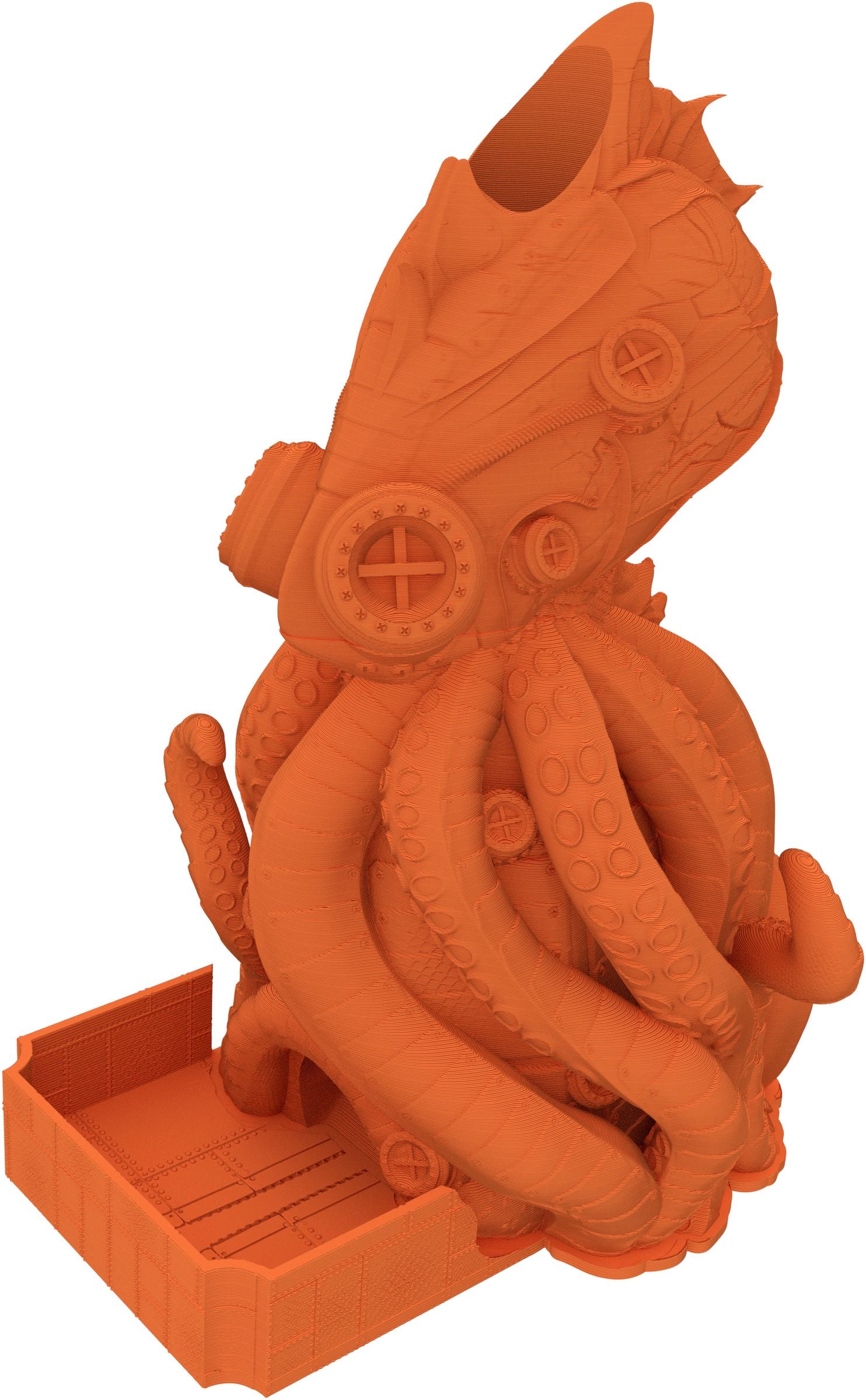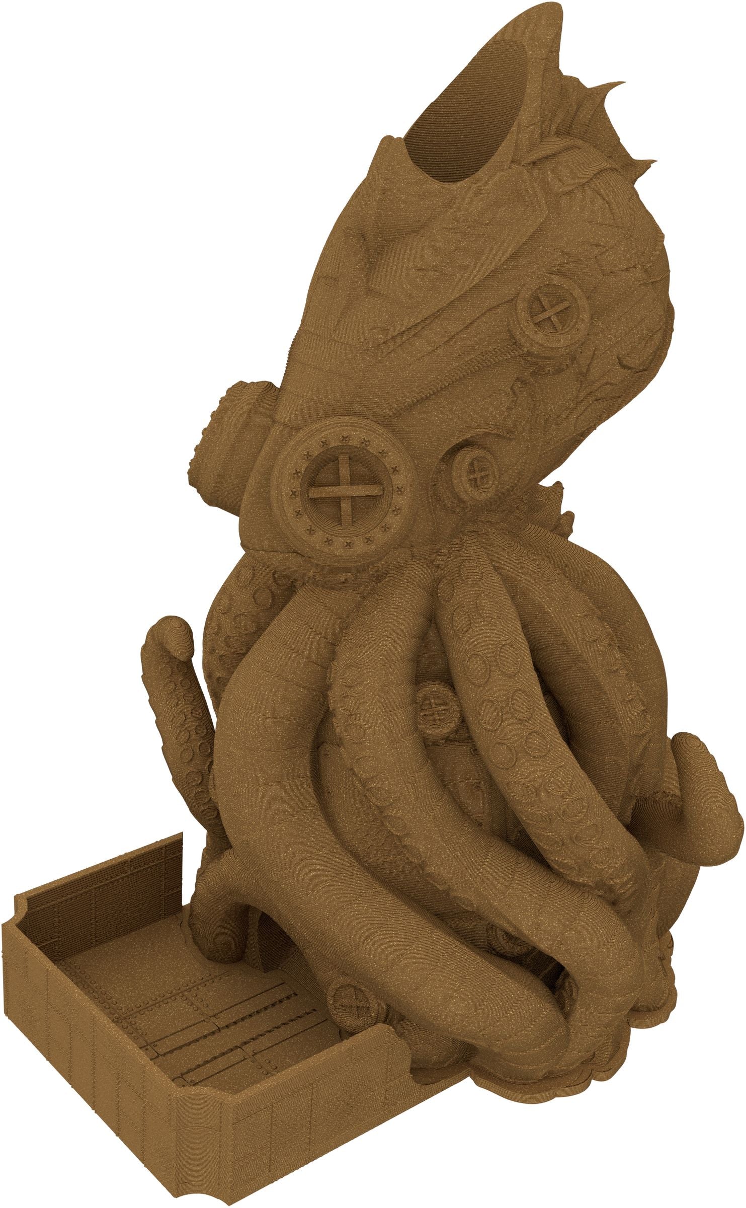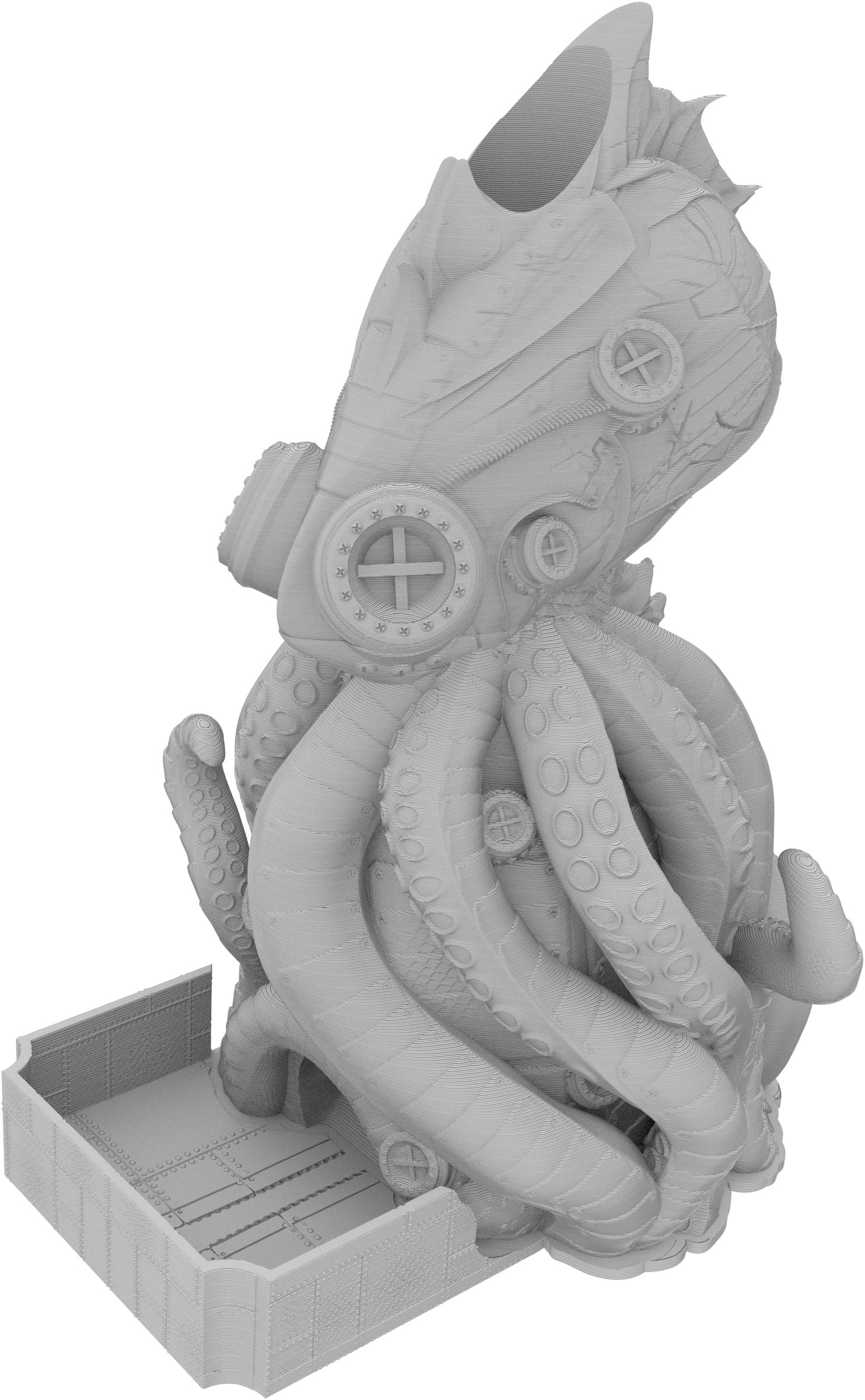 3D printed - detailed dice tower, with removable roof and exchangeable dice tray. The Dice Tower can also be used as a terrain part for your miniatures game or as a center piece for your next DnD session.