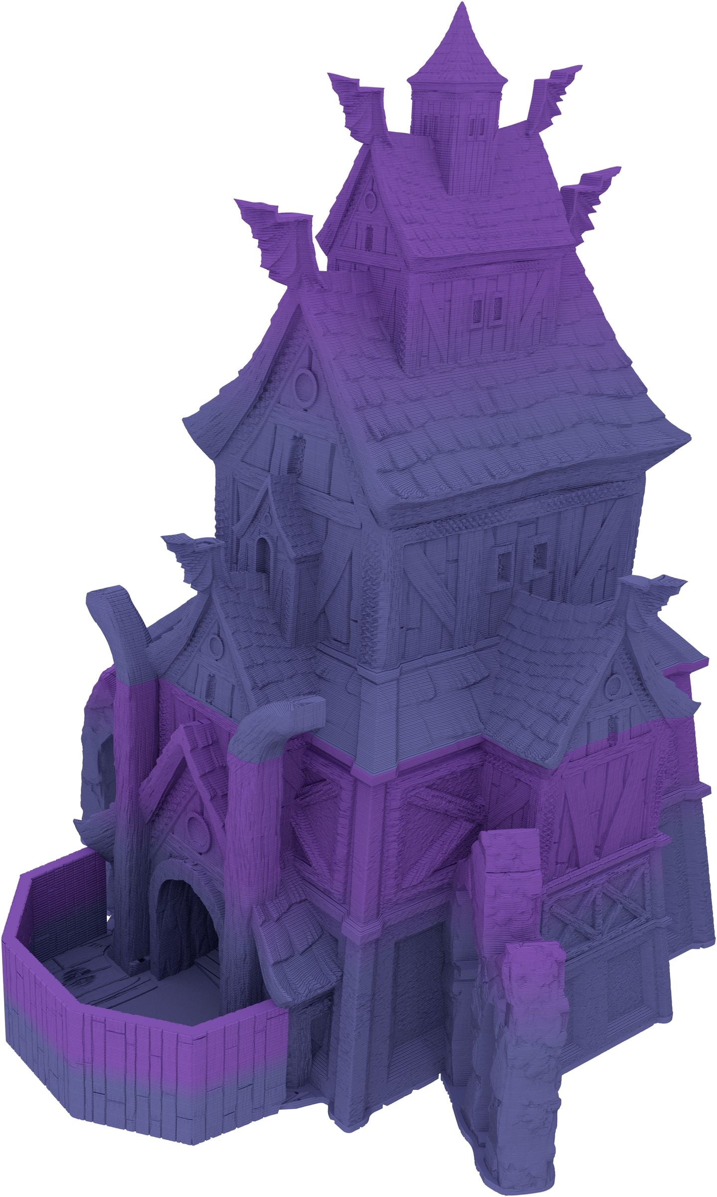 3D printed - detailed dice tower, with removable roof and exchangeable dice tray. The Dice Tower can also be used as a terrain part for your miniatures game or as a center piece for your next DnD session.