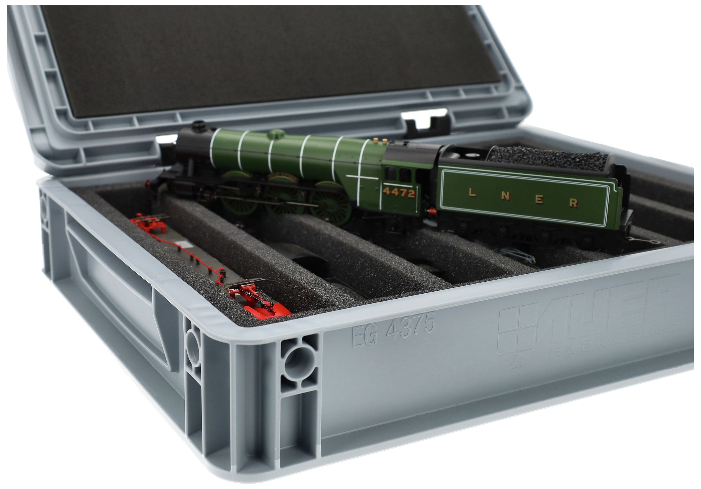 For anyone who wants to transport their 00 scale locomotives, wagons and vehicles safely and compactly: this Feldherr set combines a stackable Eurobox with a custom-fit foam insert. Whether for trips to the model railroad club, module meetings, or as a space-saving storage solution at home, your models are well protected at all times.