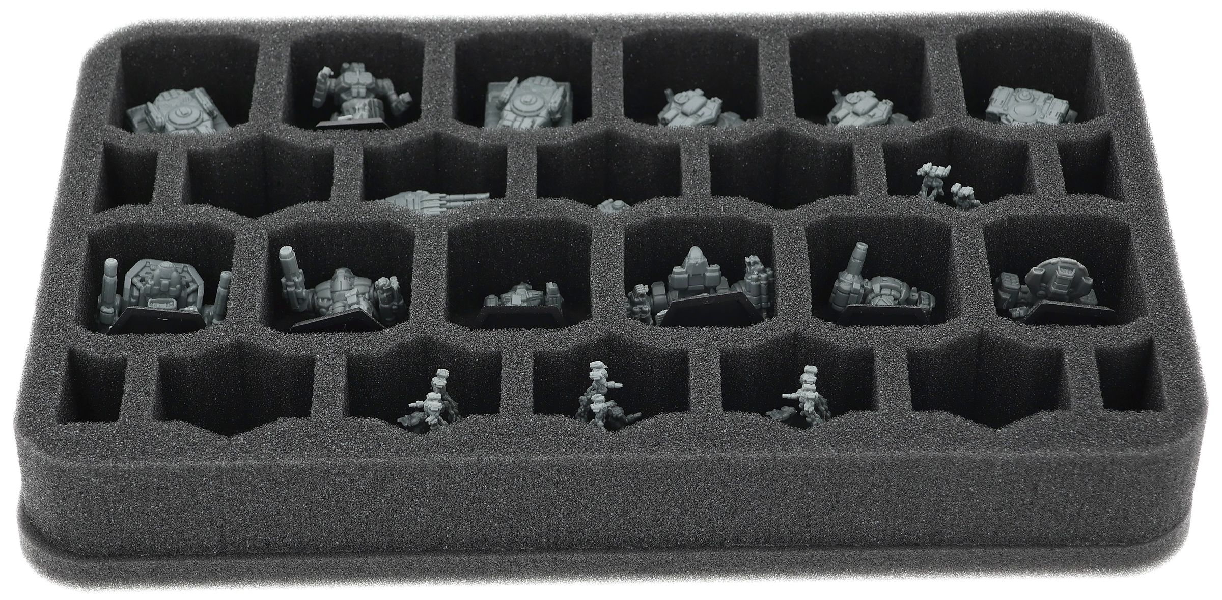 - Two half-size foam inserts (item number HS040A055) with 26 compartments each for mechs and tanks