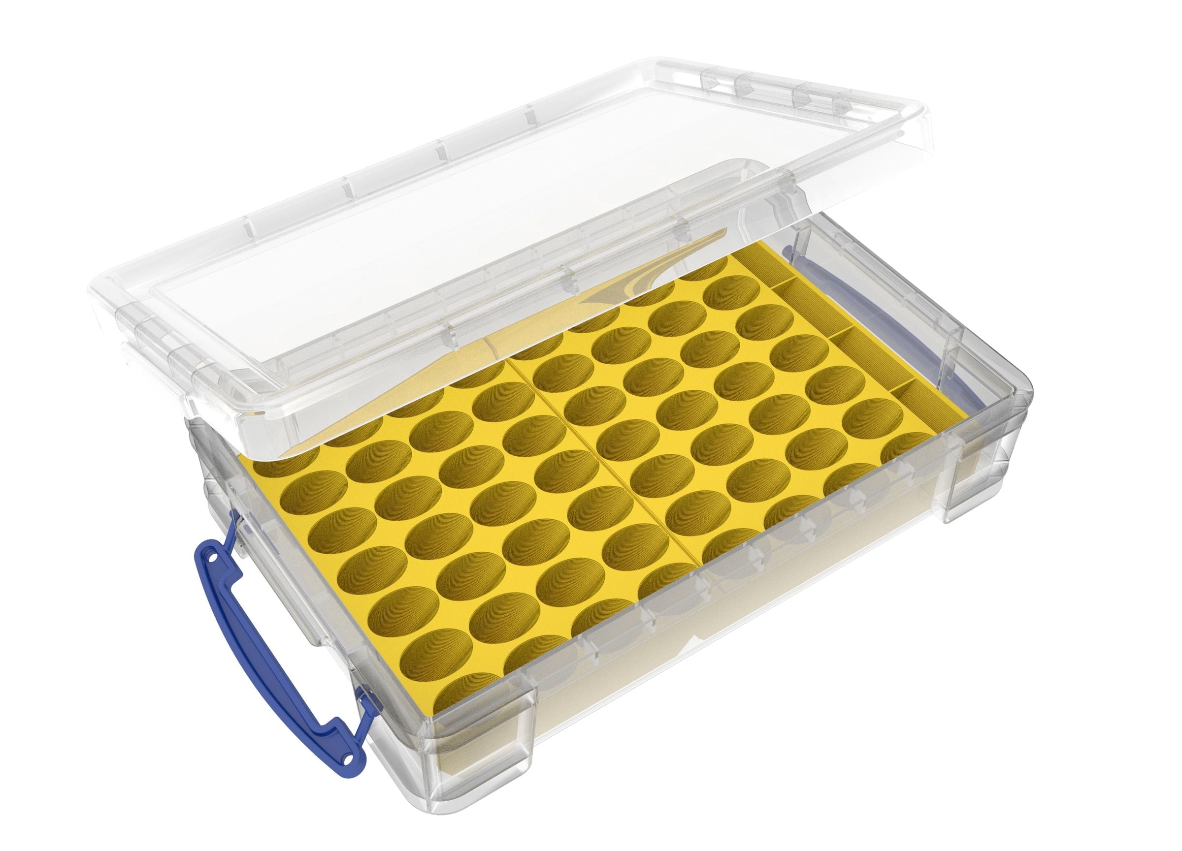 The sturdy and 4L Really Useful Box offers reliable protection and can be stored in a space-saving manner. Stack them on the shelf or pack them in your backpack. Even upside down, the colors remain in their compartments and enjoy the best protection.