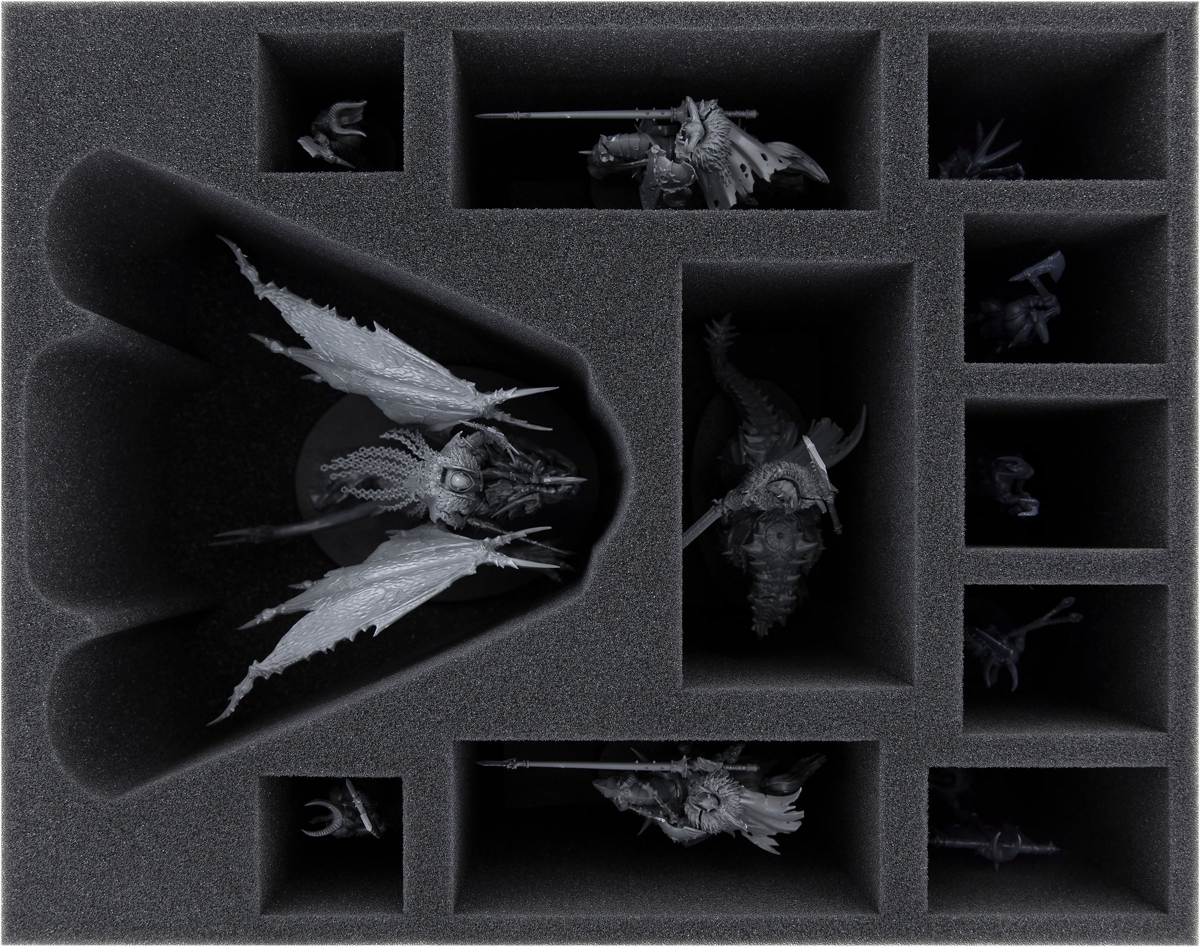 - 1 Full-Size foam tray with 6 compartments for e.g. Chaos Lord on Karkadrak, Daemon Prince, Chaos Knights, Varanguard (FS070A005)