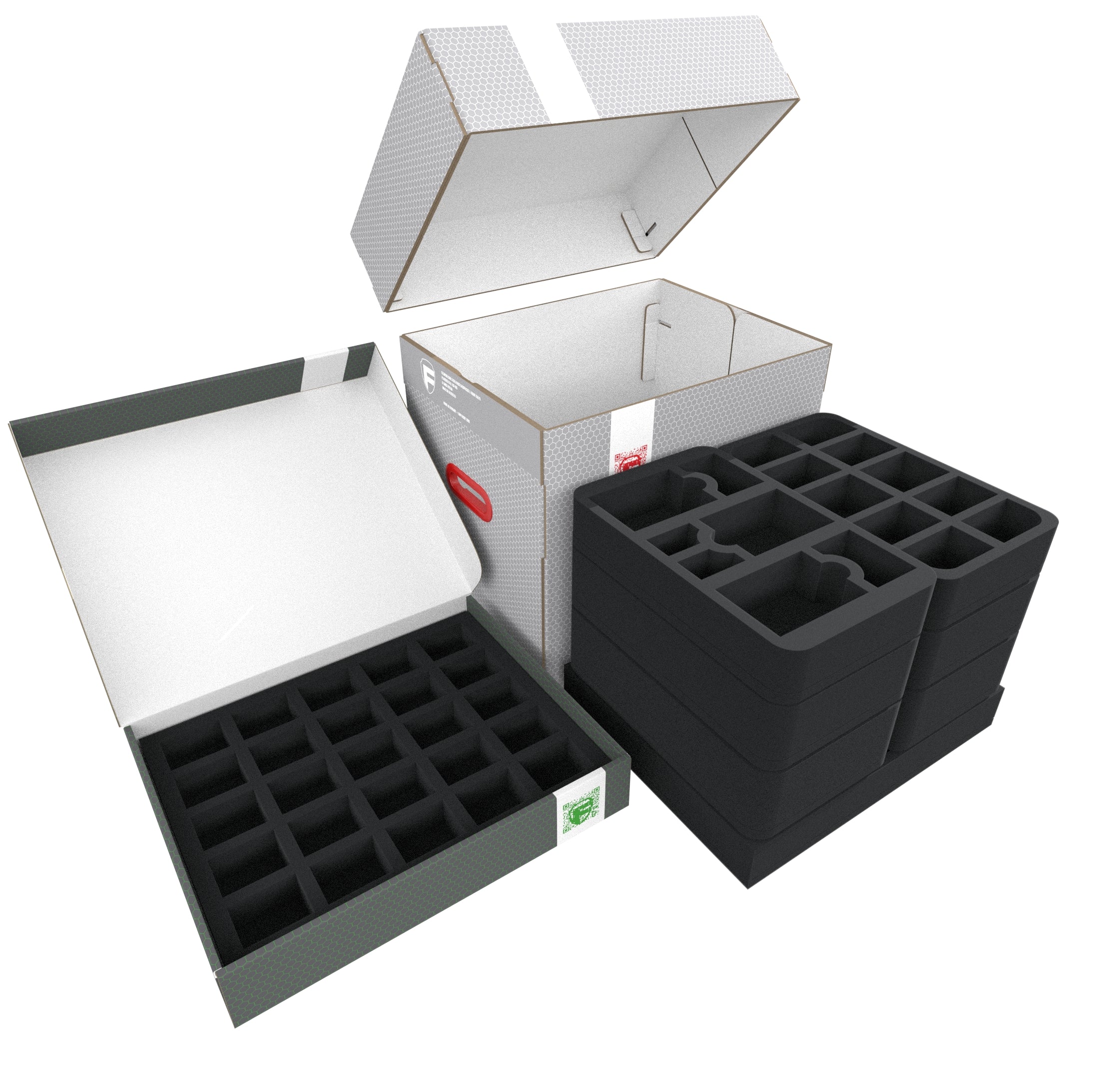 - 1 Full-Size foam tray with 25 compartments for standard infantry like Deadwalker Zombies and similar-sized models (FSLQ040BO)