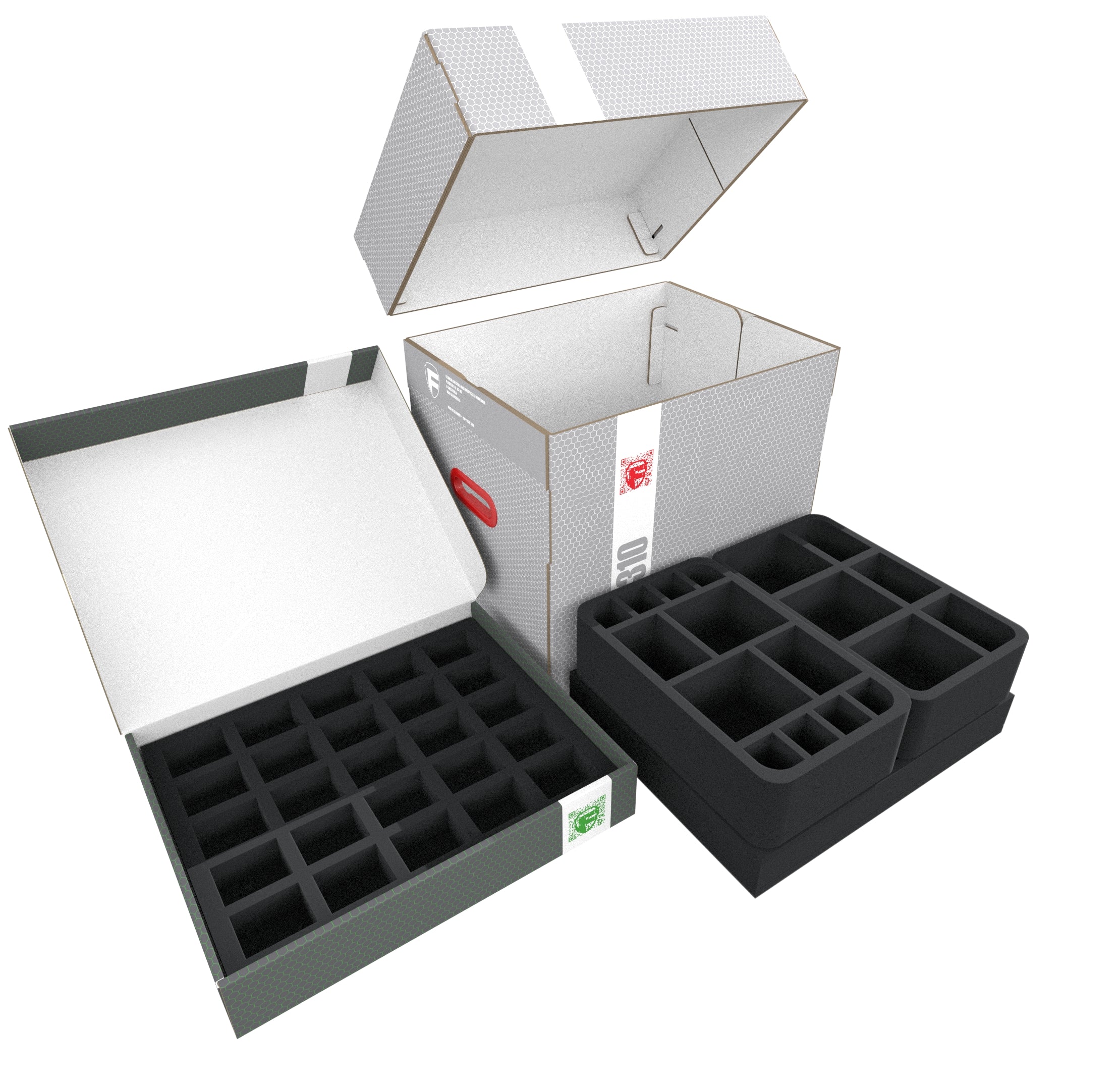 - 2 Half-Size foam trays, each with ten compartments for bulky infantry like Dire Wolves + models of similar size (HSBE050BO)