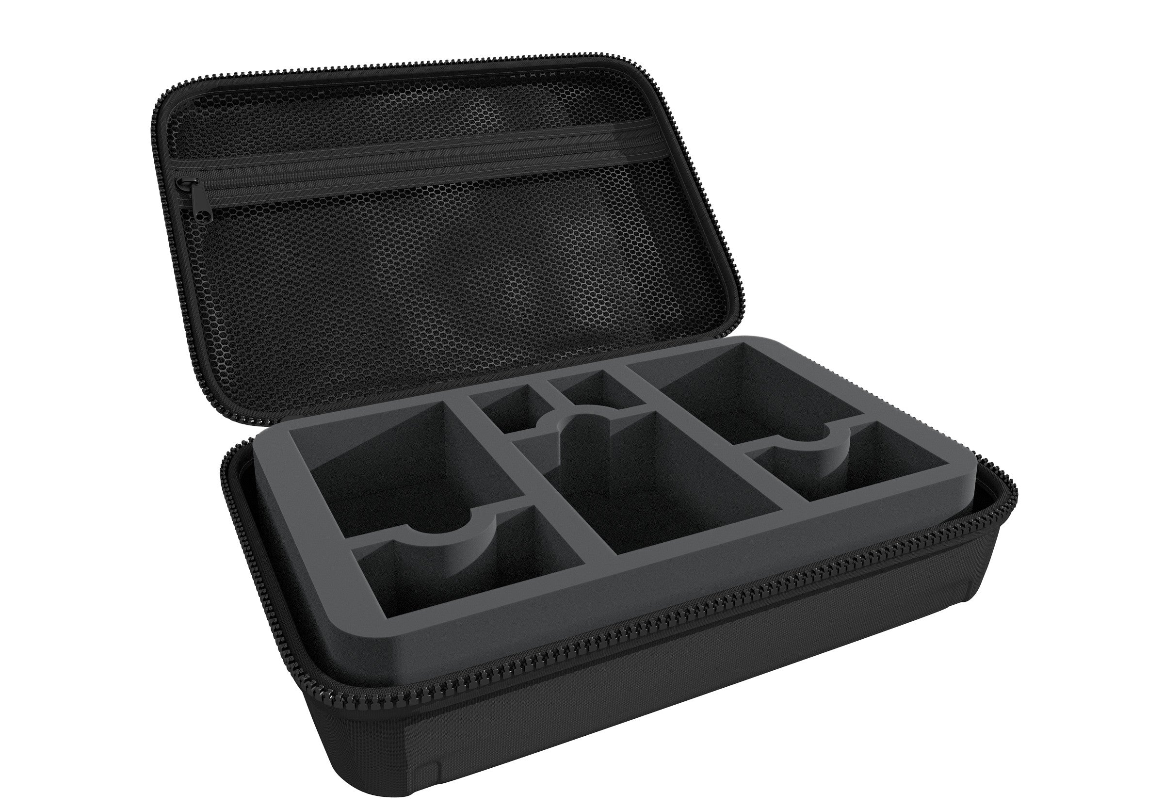For your playing cards and the game material, we have packed a Half-Size foam insert with seven compartments of different sizes into the case.
