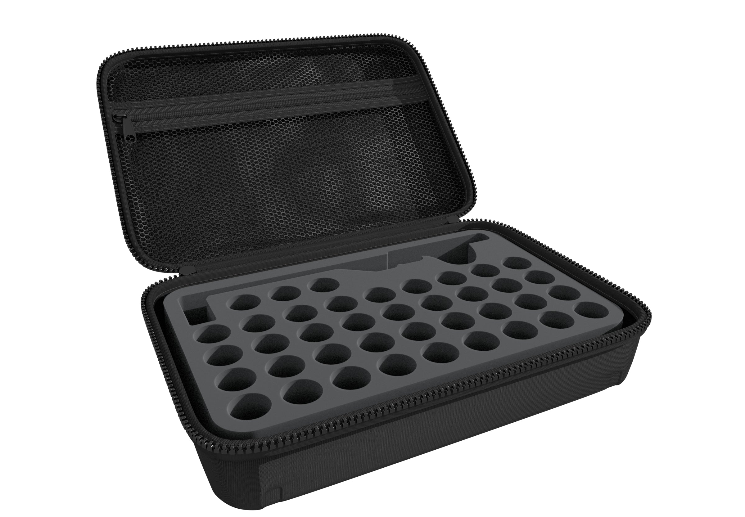 The HS Case 50 is made of durable and still lightweight EVA. The black polyester cover and the handy shape provide an elegant finish, and the contents are optimally protected from external influences. An inside pocket with a zipper offers additional space for sheets, writing material, and other small pieces.