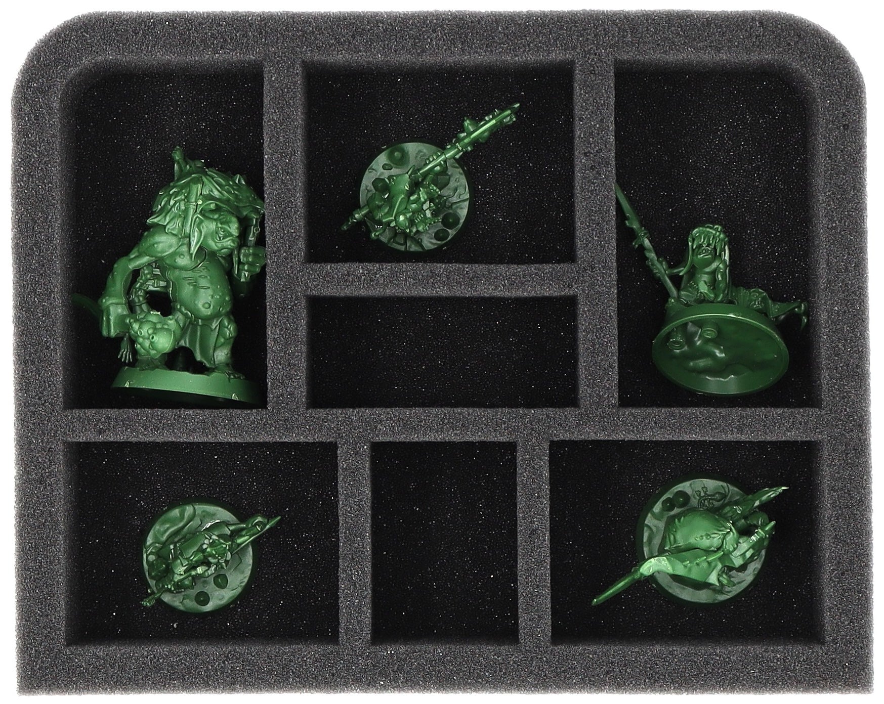 - 2 Quarter-Size foam tray with 7 compartments for warbands such as the Grandfather's Gardeners and models with similar dimensions (QSMFKR050BO)