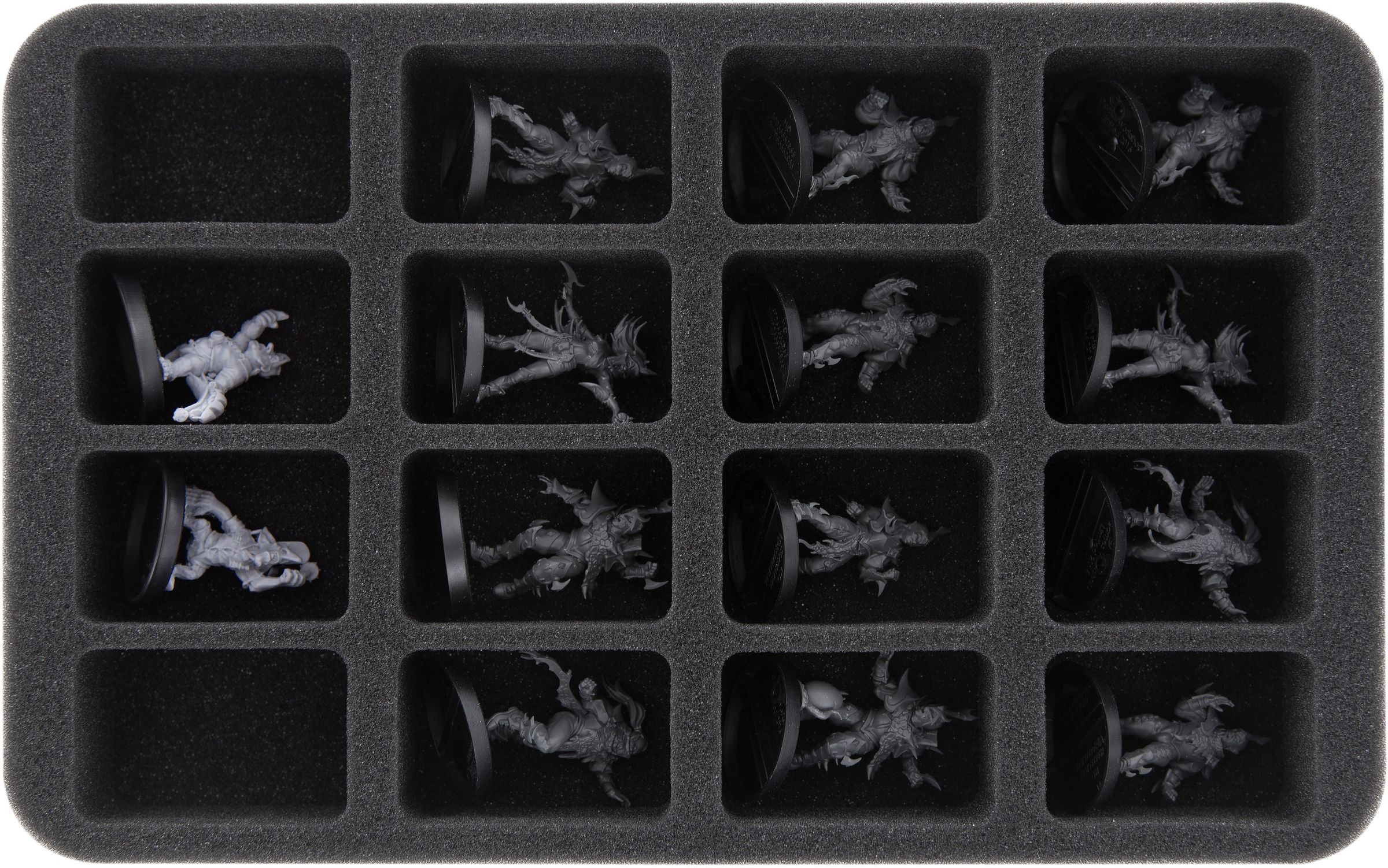 - 1 Half-Size foam tray with 16 compartments for standard infantry miniatures on up to 32 mm base (HS040BF05BO)