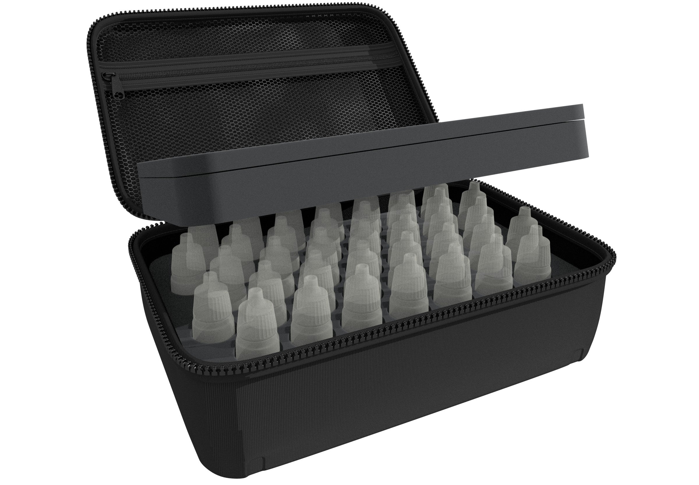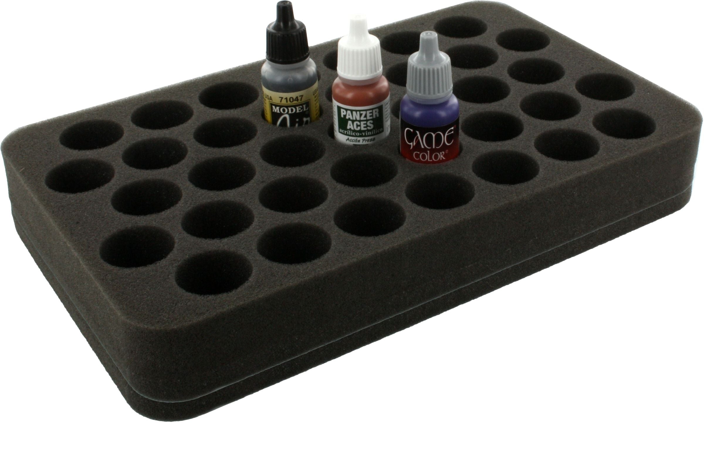 Up to 37 model color bottles can be stored here in a clearly arranged and transportable way. Thanks to the lightweight material, the foam insert is a wonderful addition to your hobby bag.