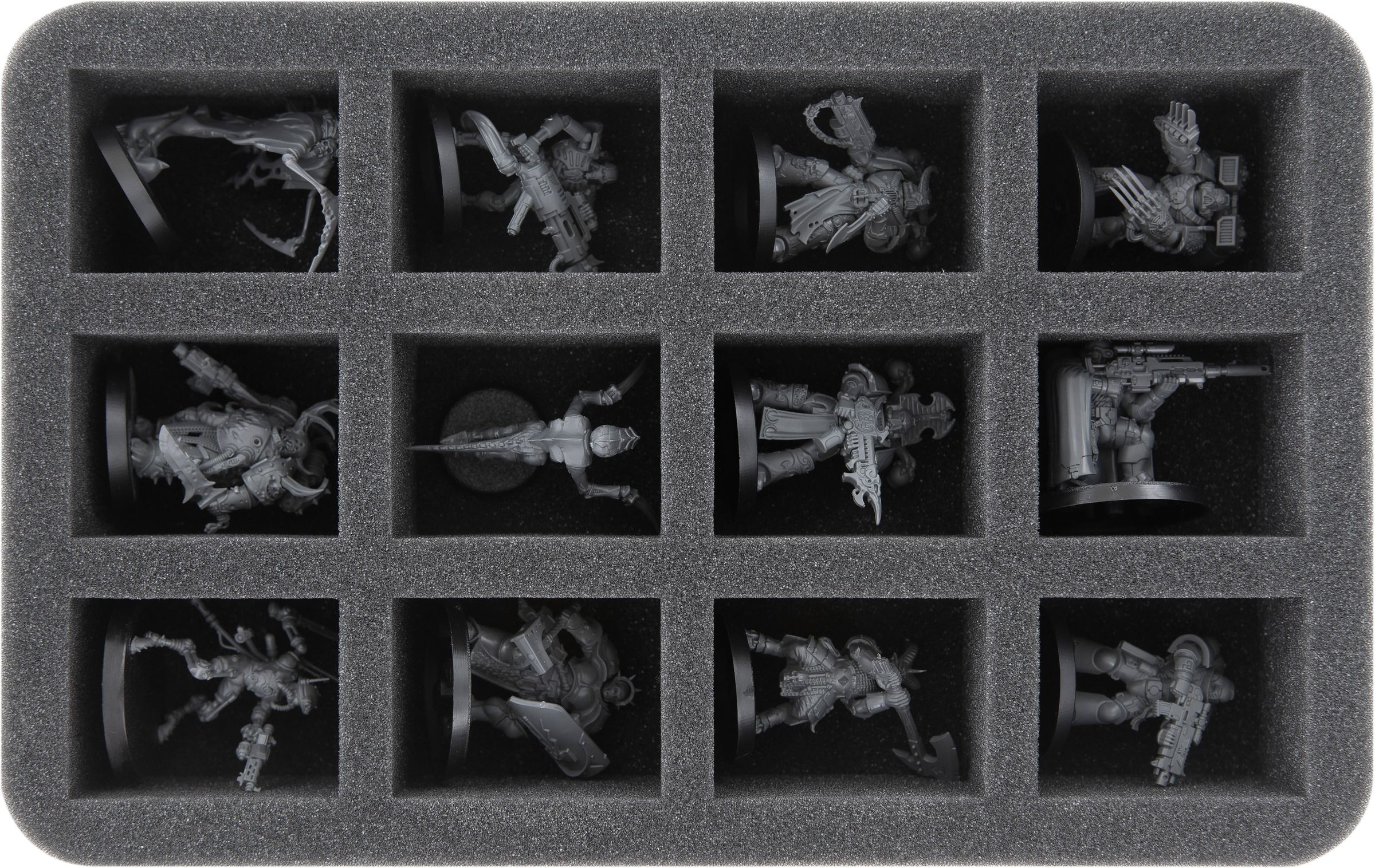 - 1 Half-Size foam tray with 12 compartments for e.g. Chaos Warriors (HS045I012BO)