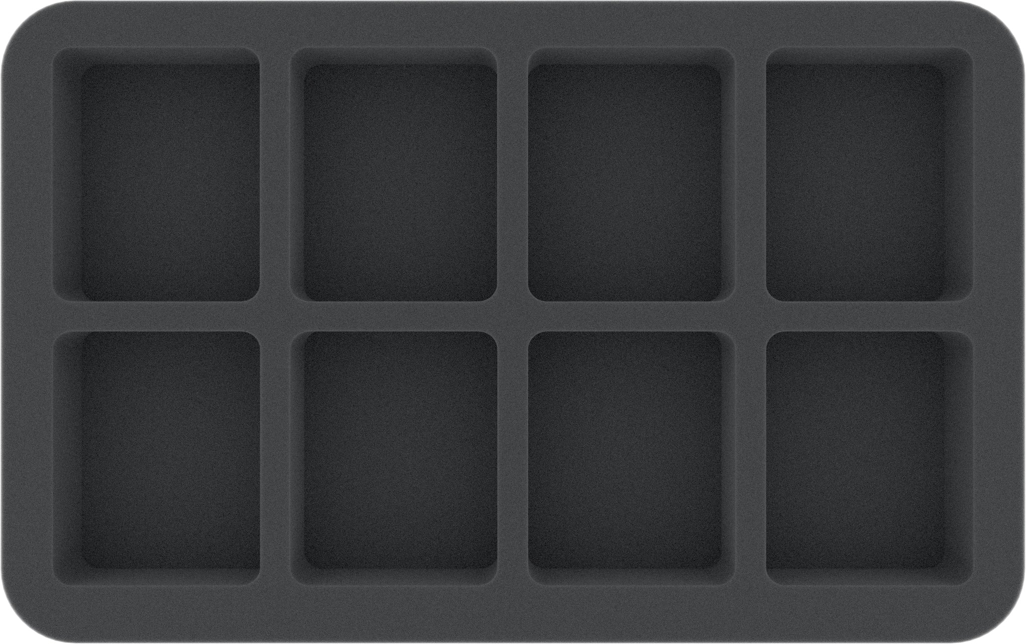 One Half-Size foam tray with a total of 20 compartments takes care of the well-being of your heroes. 18 compartments provide safe space for the hero miniatures. From Kroghan to Skeld to Volkor, every figure gets the right compartment. Thanks to the custom-fit cut, the miniatures stay in their softly padded place even during transport. With this, the painted models are also safe from abrasion and flaking colors.