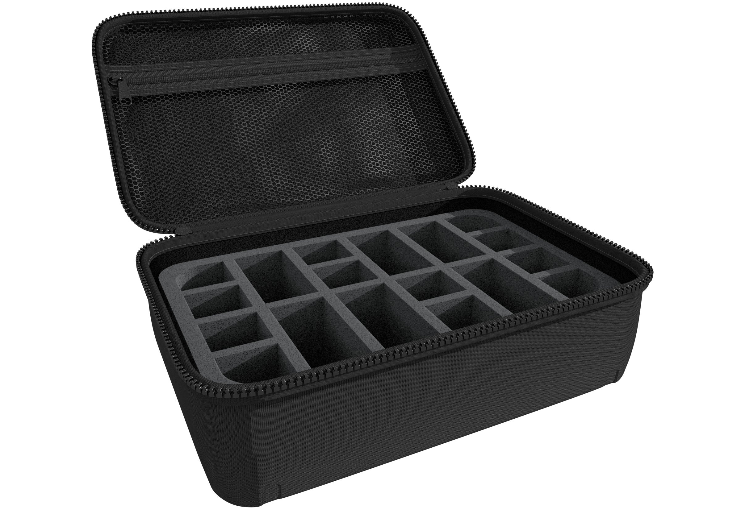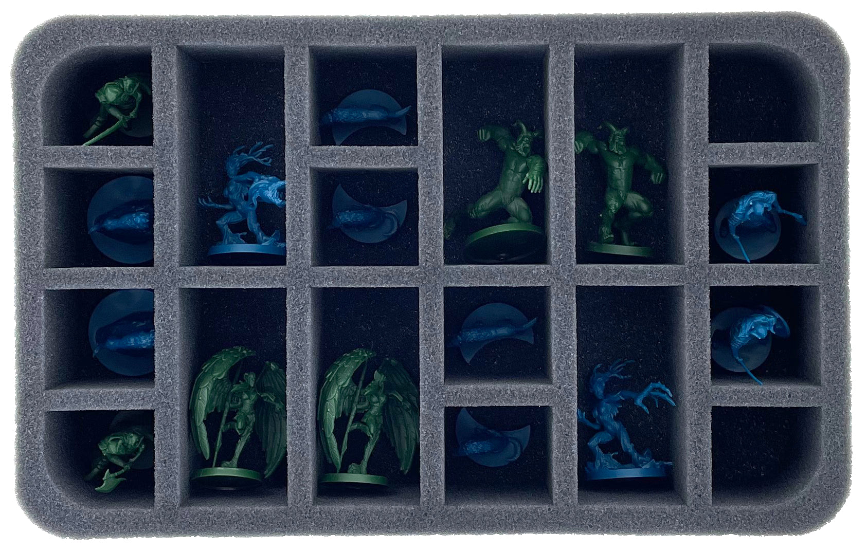 A Half-Size foam tray with a total of 18 compartments takes care of the well-being of your villains. Each miniature has its own compartment. Thanks to the custom-fit cut, the miniatures remain in their softly padded places even during transport. The soft foam also protects the painted models from abrasion and chipping paint.