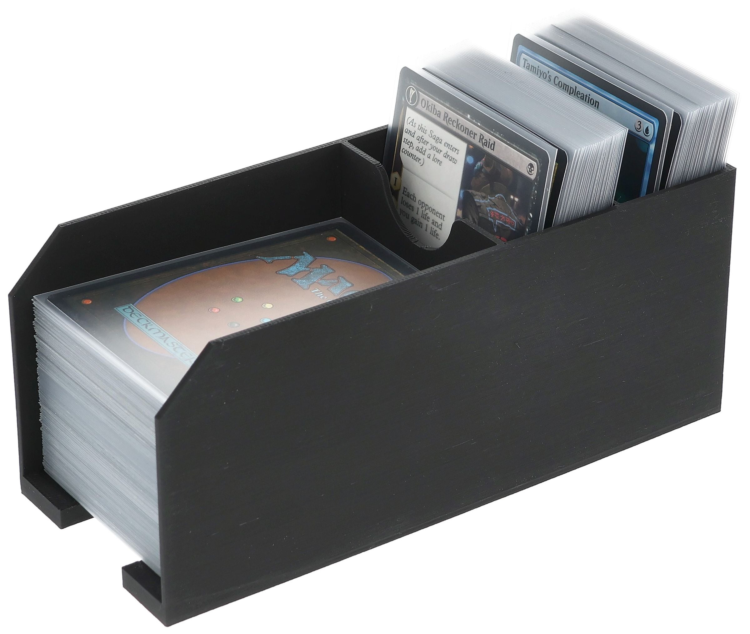 - The different compartments prevent cards from being drawn from the wrong deck or mixing up the stacks.