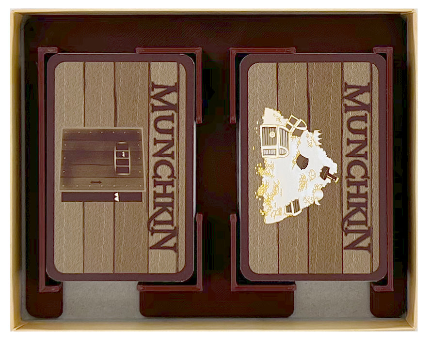 Do You like to store your Munchkin cards in the original card boxes? But the cards should be stable and neatly sorted. Then this Feldherr card holder is the answer to your needs. It perfectly fits the game boxes of many expansions and offers space to store more than 110 cards.