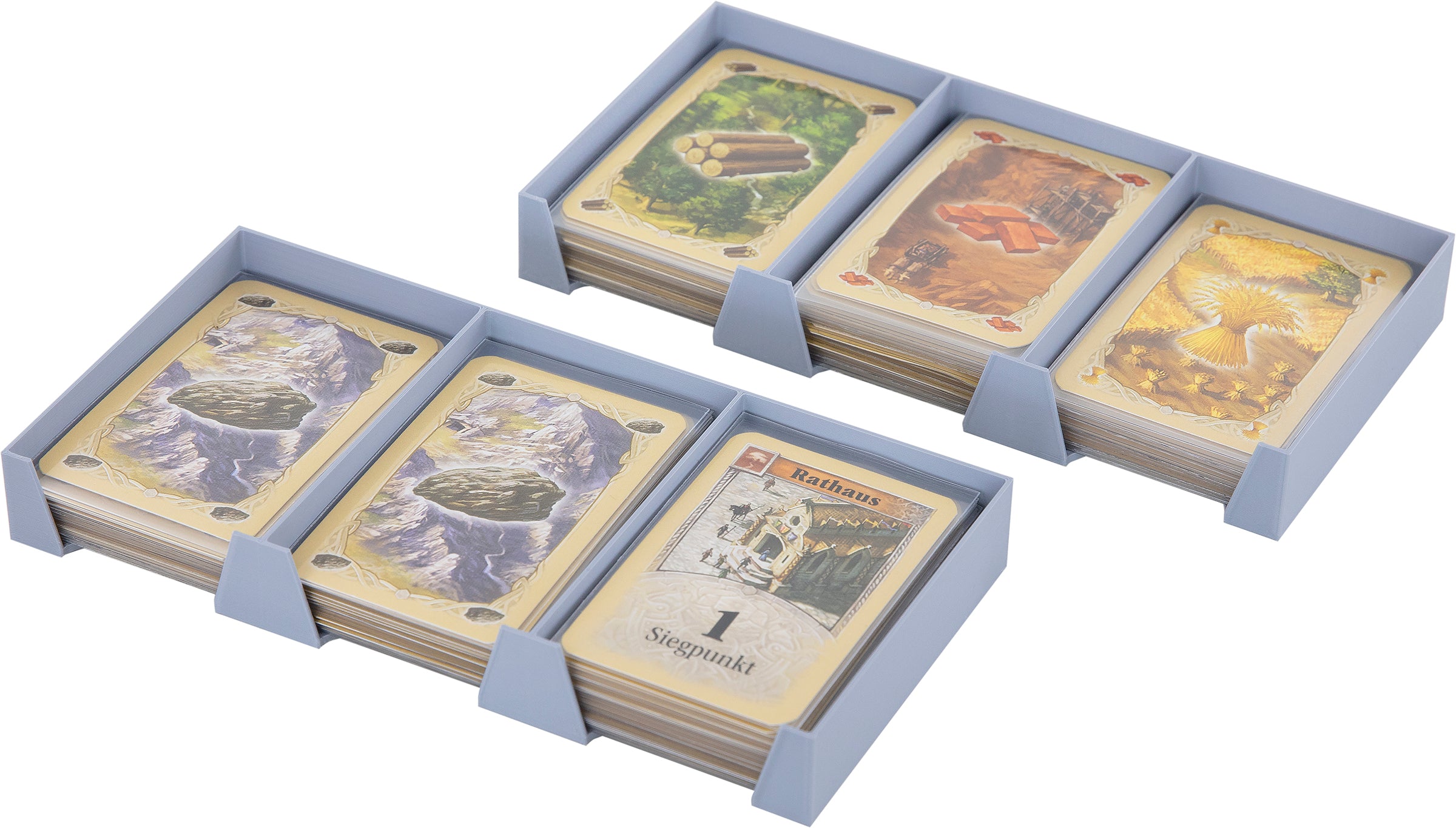 - The trays are only compatible with the European version of "Catan" by e.g. KOSMOS. The English-language version uses a different card format (54 x 80 mm).