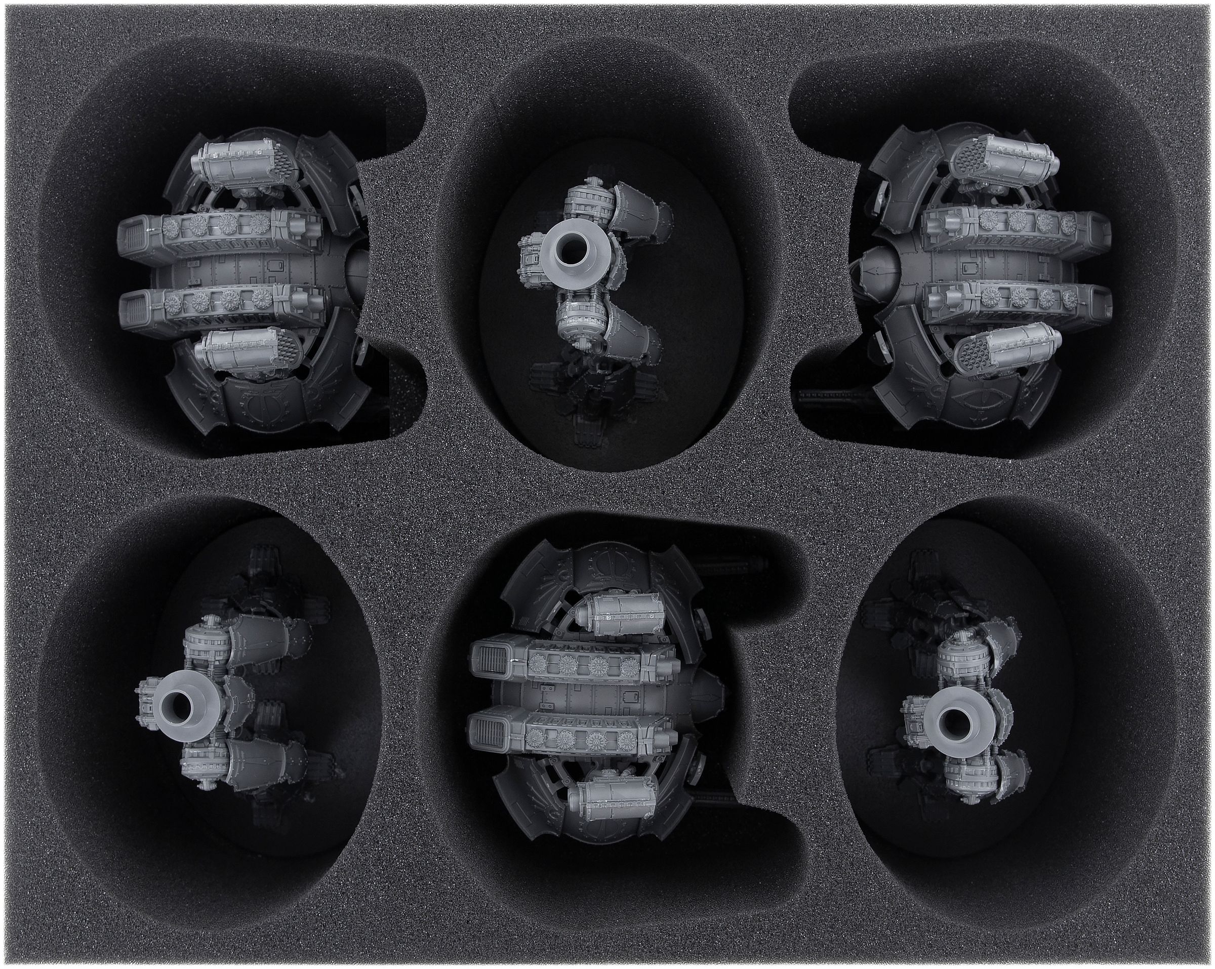 - 1 foam tray with 6 compartments for large models, e. g. Acastus Knights or Porphyrion (HSMECO075BO)