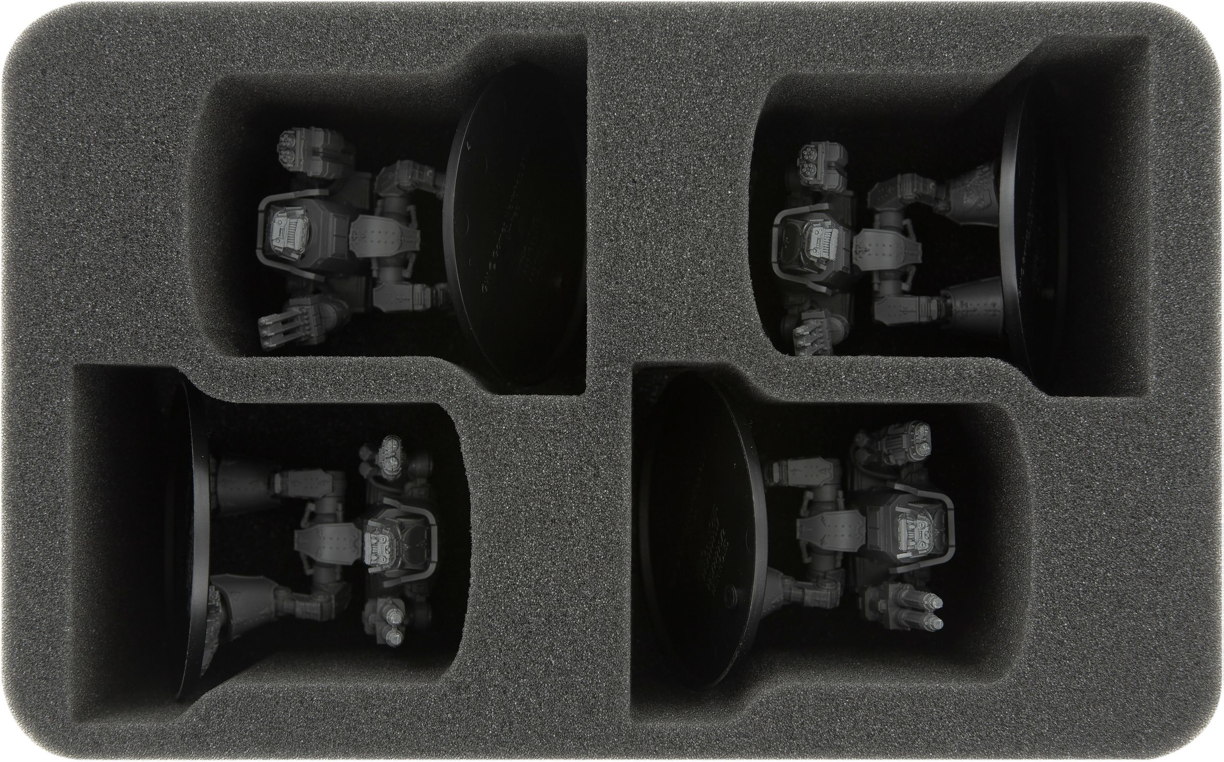 - 1 foam tray with 4 compartments for 4 Warhound Scout Titans (HSMEHK085BO)