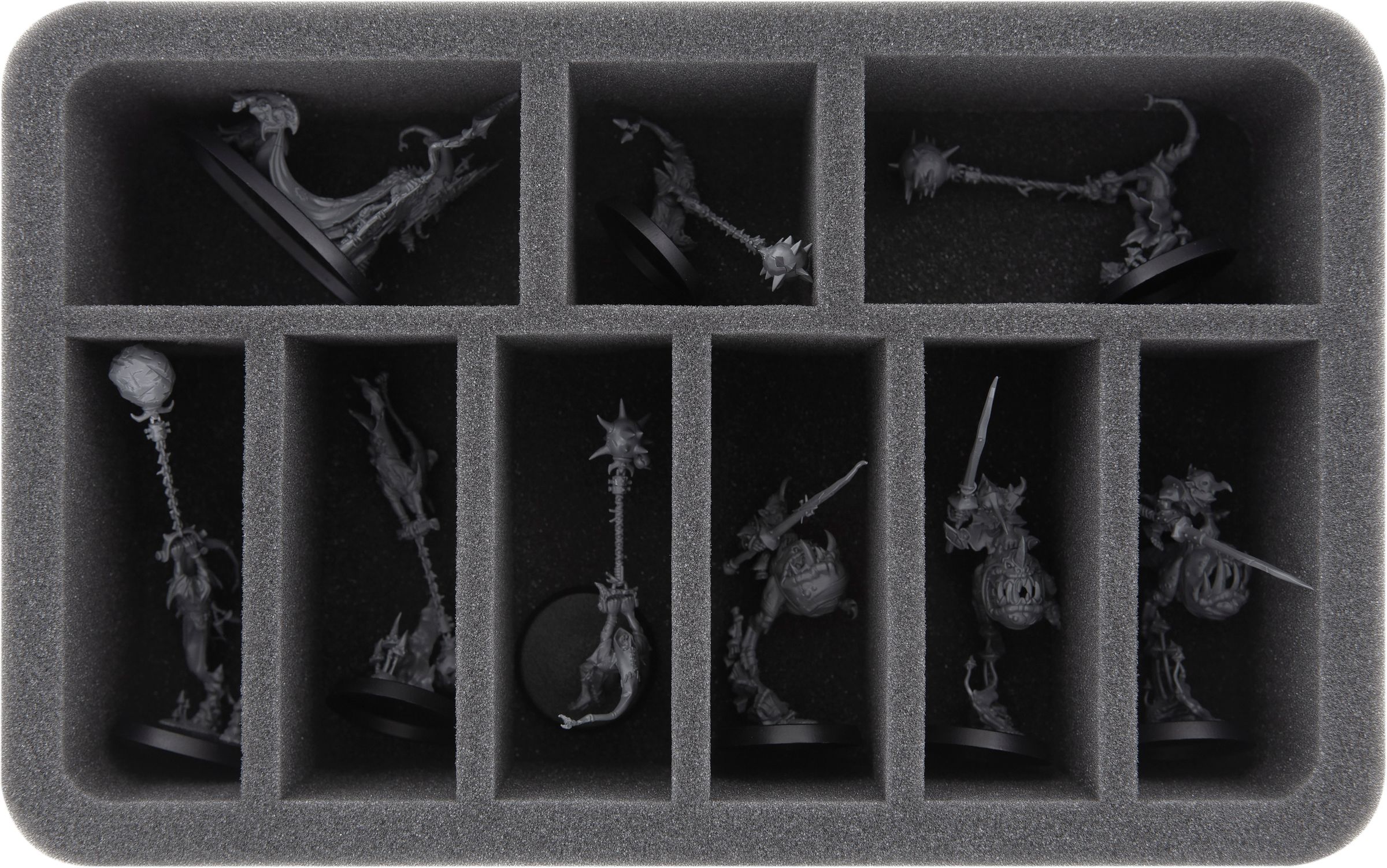 • 2 foam trays with 9 compartments each for Squig Hoppers, Fanatics and Skagrott the Loonking (HS060WH56)