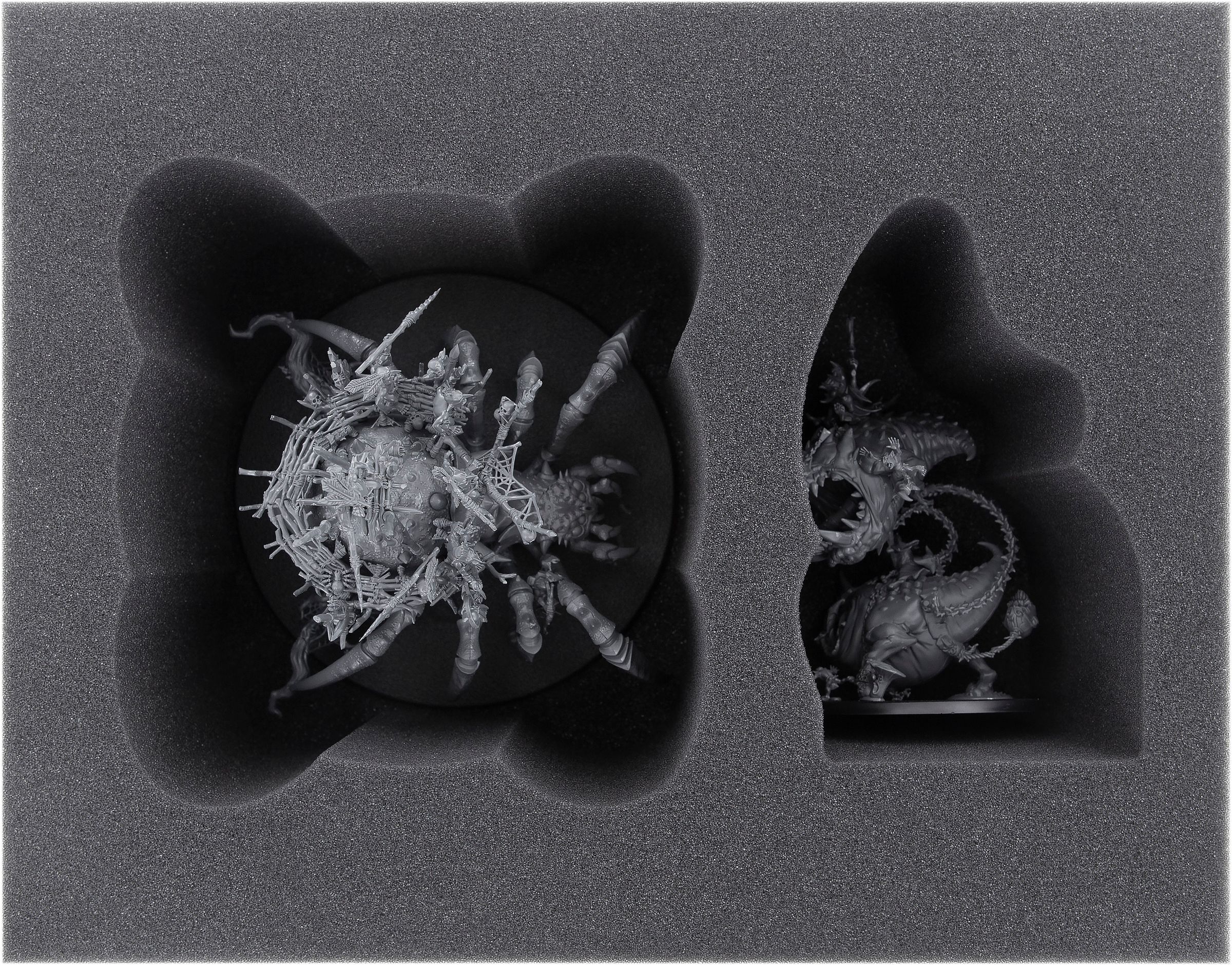 • 1 two-part foam tray for Arachnarok Spider and Mangler Squigs (FSMEKG110BO + FSMEKH055)