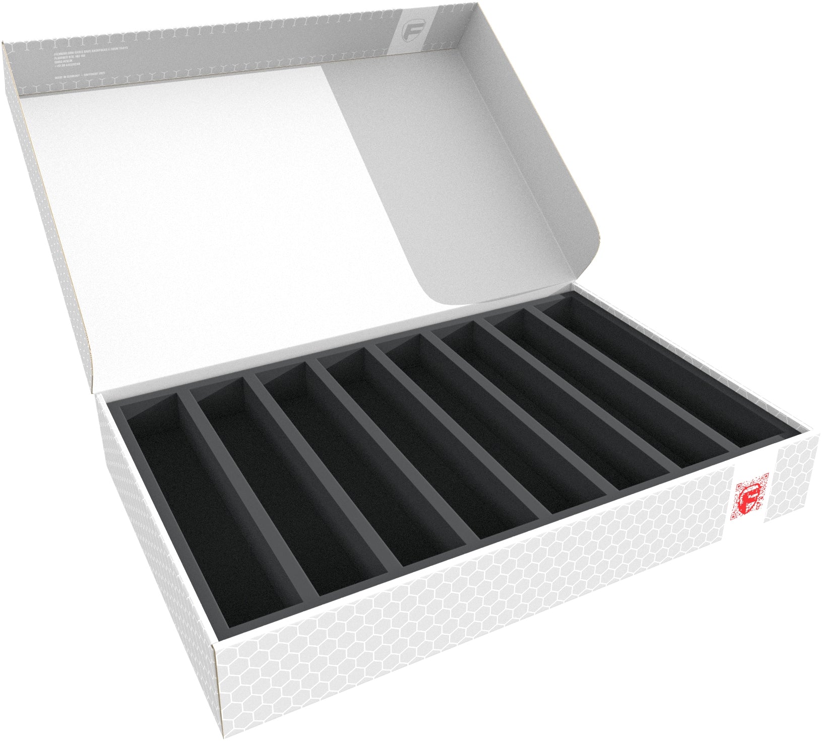 The inlay fits perfectly into the Feldherr Storage Box DSLB075. The box is made of coated, double-walled cardboard. This makes it not only pleasantly light, but also particularly tear-resistant and stable. The models can be stored safely and protected against dust and other external influences. Thanks to the flat, compact form, they are easy to transport.