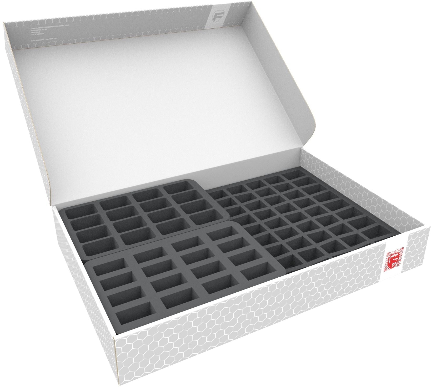 - 1 Full-Size foam tray with 25 compartments for bulky 20 mm tabletop figures like Knights Templar, cannons of the French Imperial Guard and miniatures with similar dimensions (FS035A030)