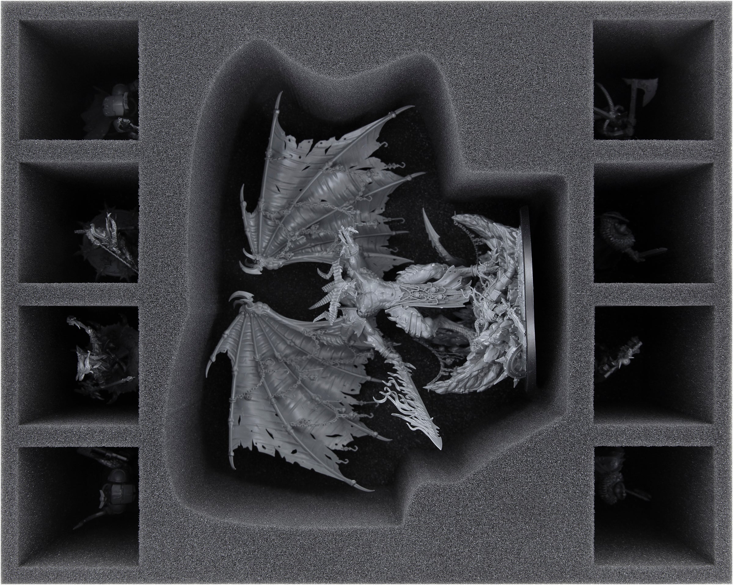 - 1 Full-Size foam tray with 9 compartments for e. g. Be’lakor and 8 other bulky figures (FSMFDA110BO)