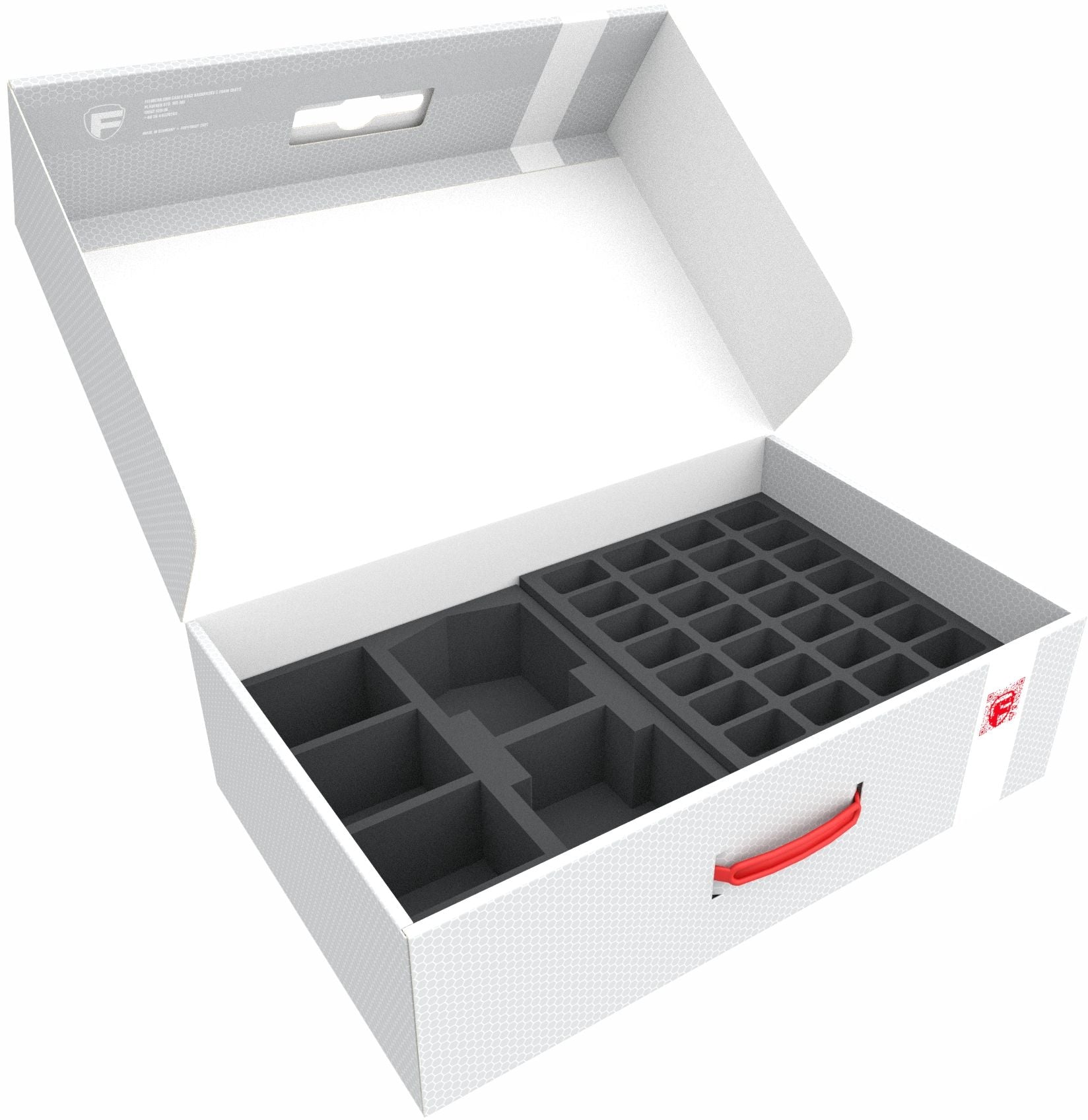 Precisely fitting compartments reliably protect your miniatures from damage. The soft foam ensures that your painted units arrive at the gaming table without scratches or chipped paint.