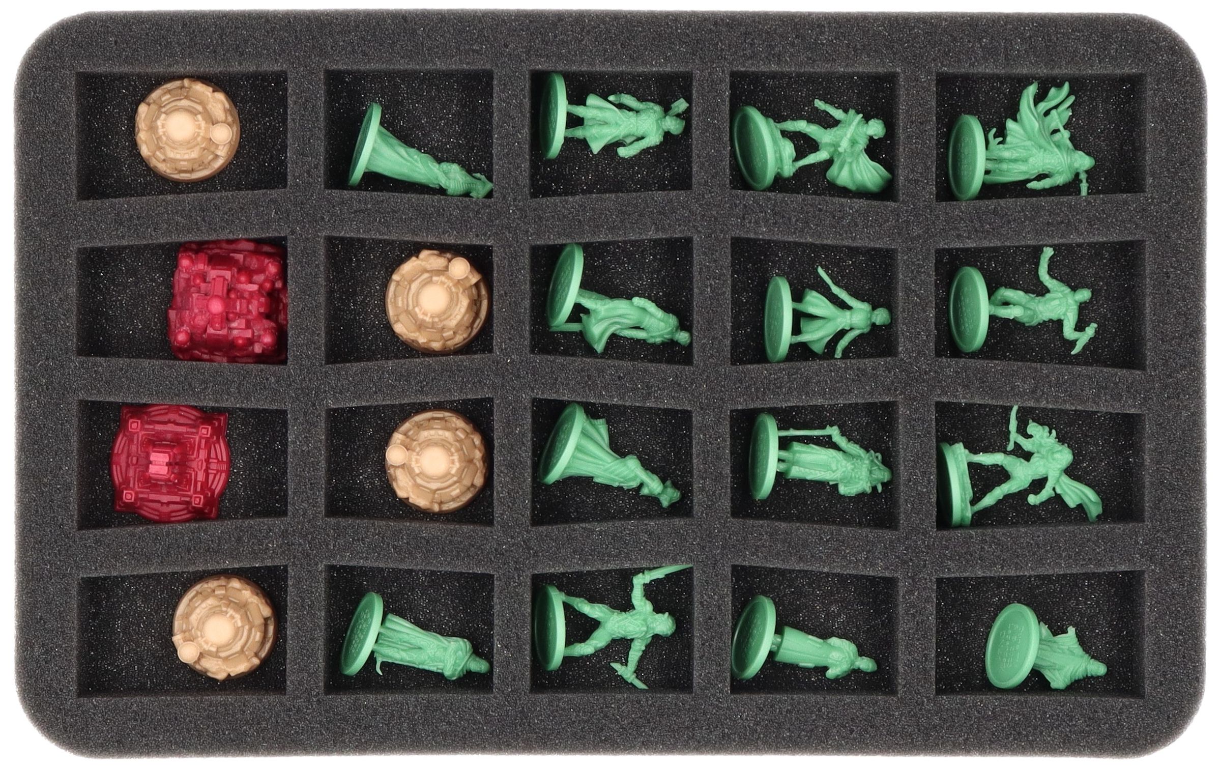 - 1 Full-Size foam tray with 13 compartments for miniatures, cards, and game materials (FSLG050BO)