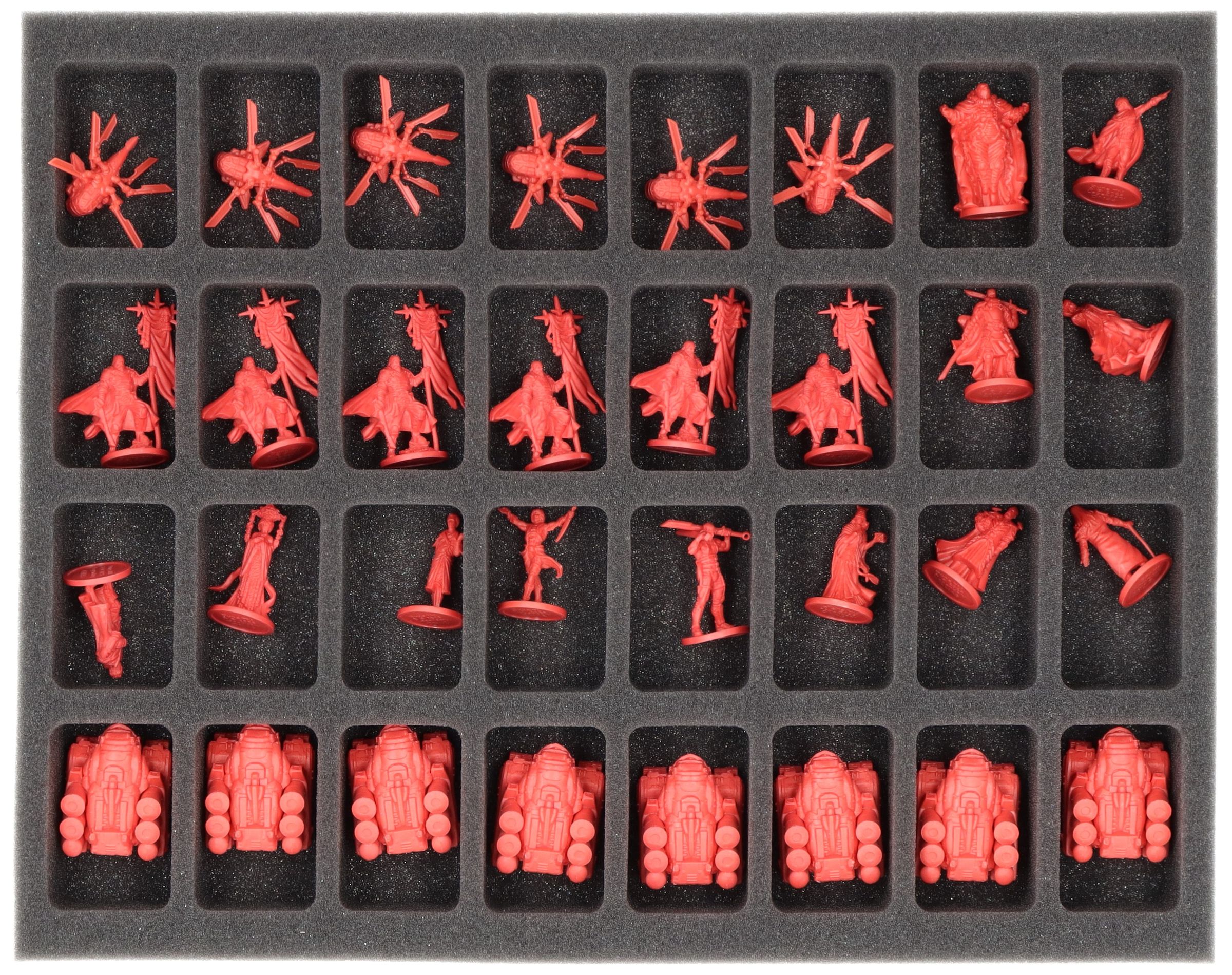 - 1 Full-Size foam tray with 32 compartments for miniatures (FSMEDS040BO)