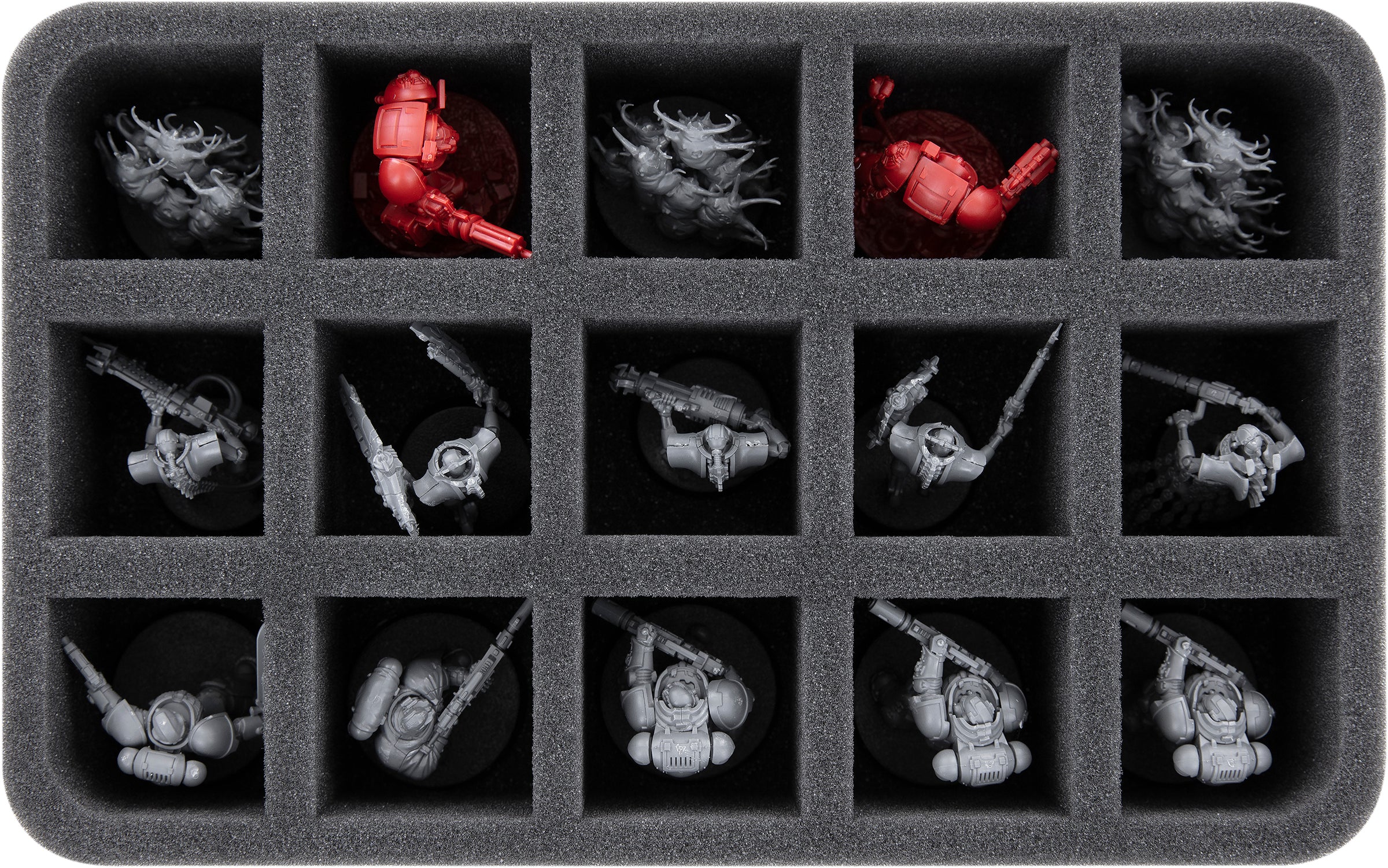 - 2 Half-Size foam trays, each with 15 compartments for e.g. Necron Warriors, Immortals, Deathmarks (HS060A039)