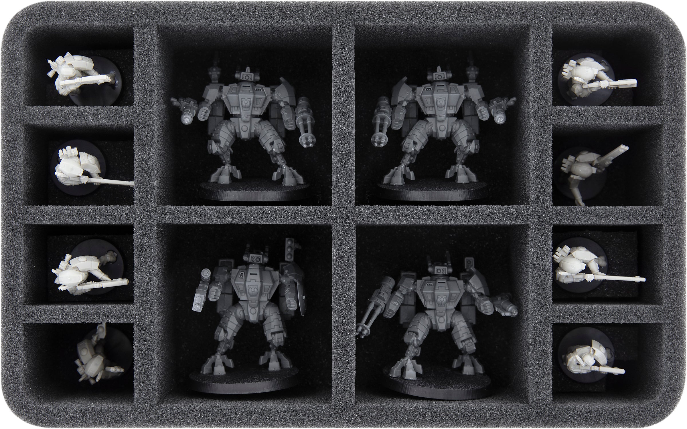 You can use the remaining five compartments for the TX4 Piranha's flying base, as well as drones or miniatures of similar dimensions.