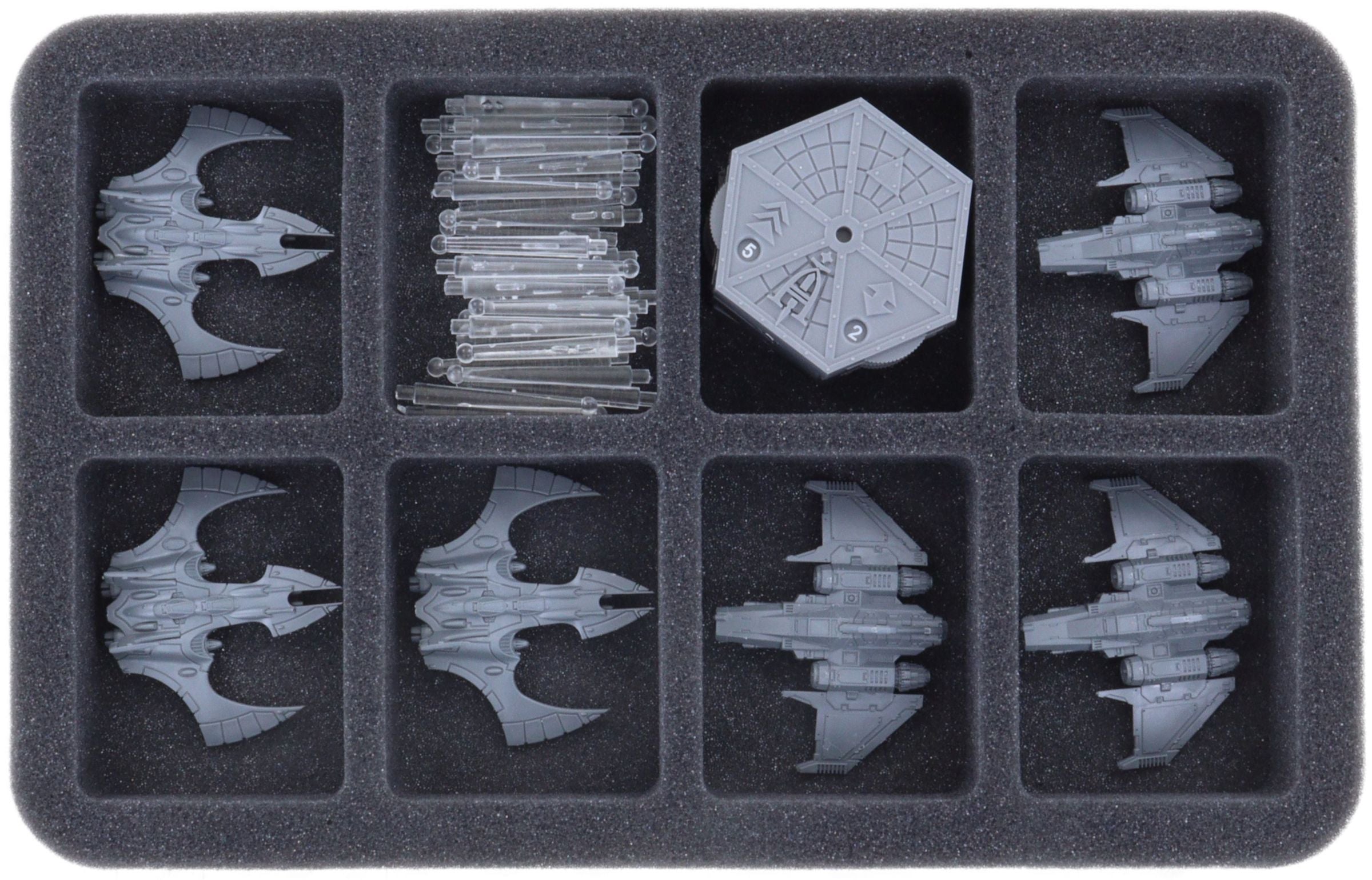 - 2 foam tray with 8 compartments for Xiphon Interceptor or Fire Raptor/Storm Eagles + flying bases + flying stem (HS035A047)