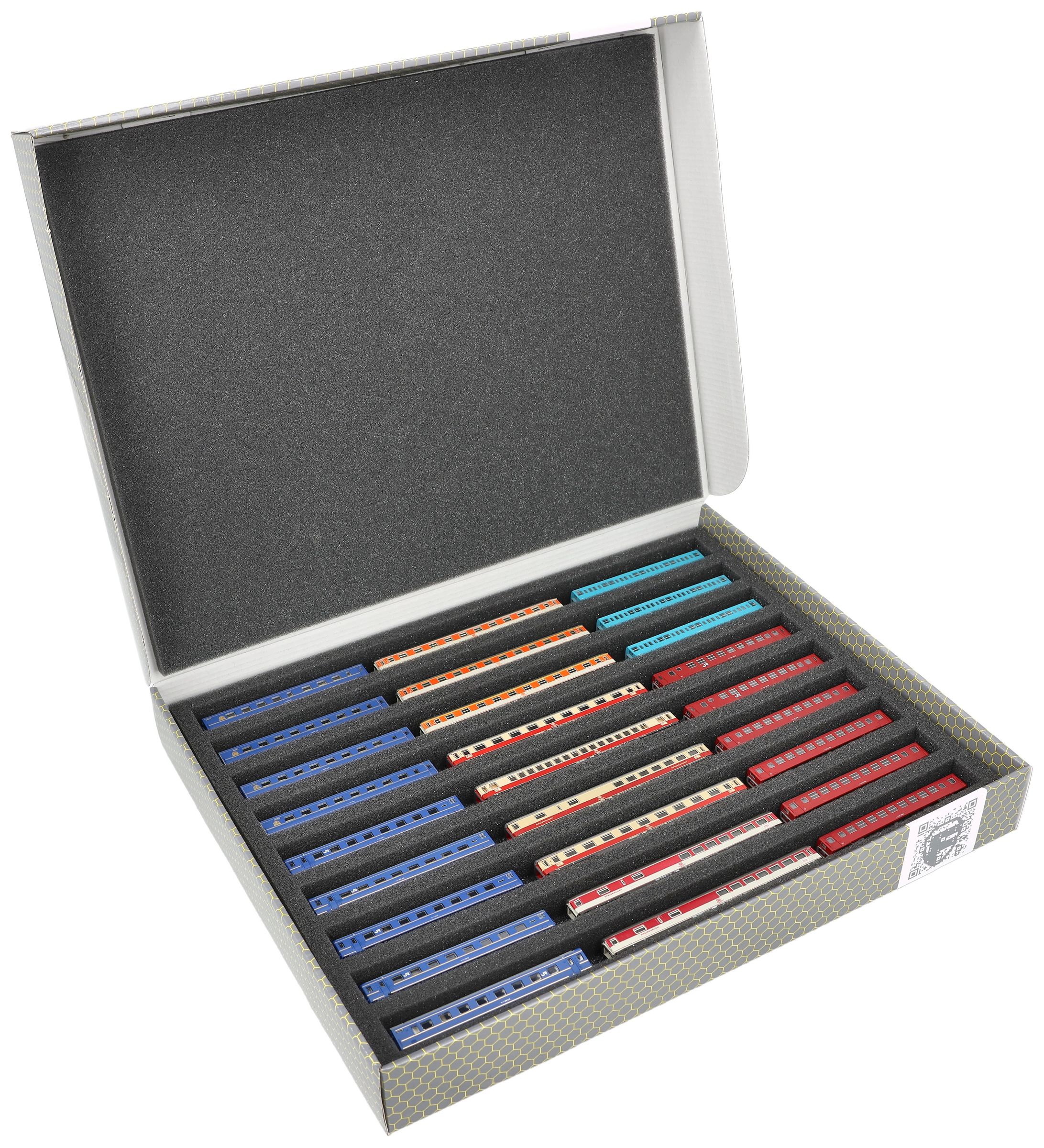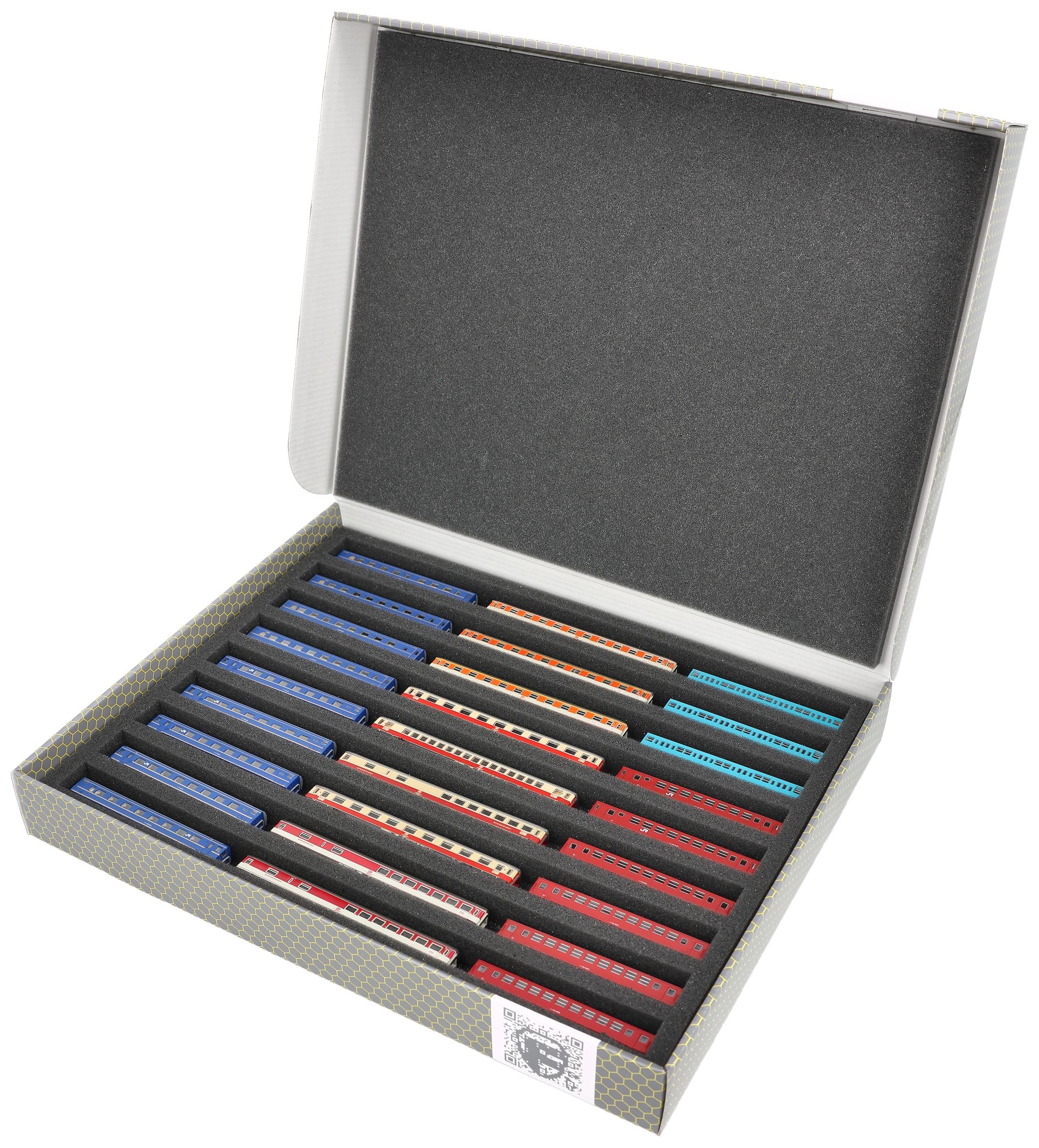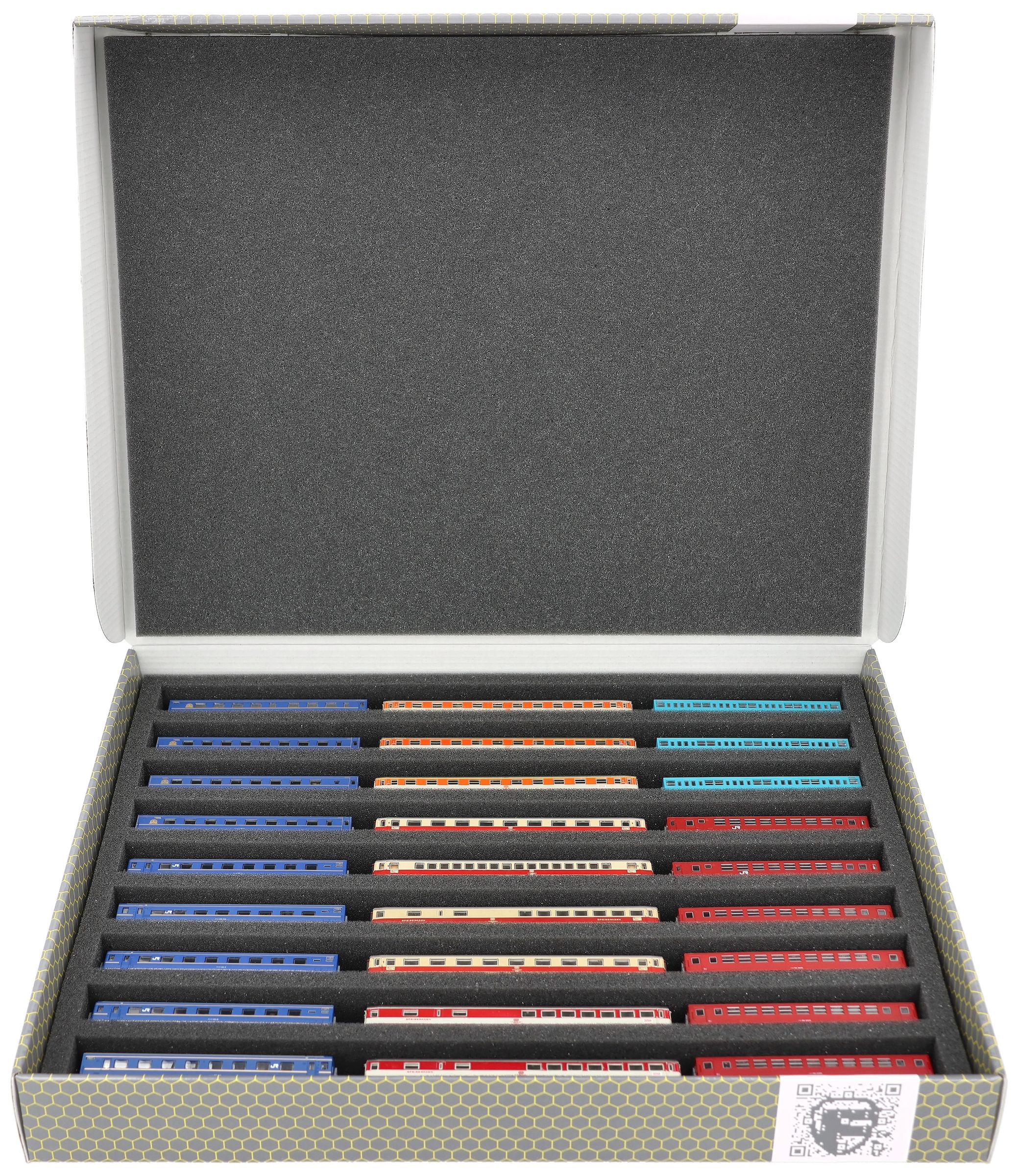 Nine compartments, tailor-made for model railways in upright position, in Gauge Z, offer your wagons and locomotives reliable protection for storage and transport.