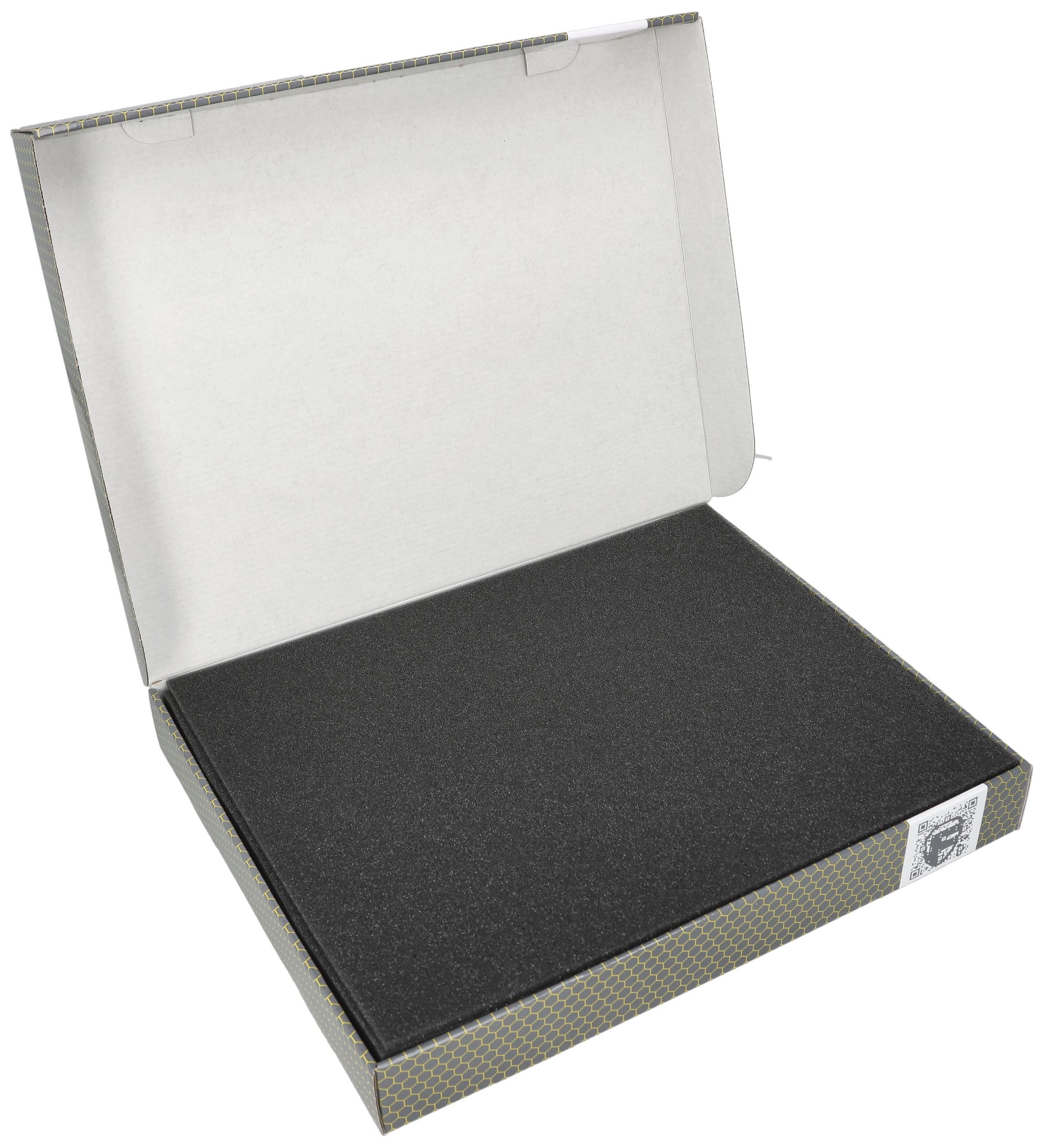 The Full-Size foam tray has the dimensions: 345 mm x 275 mm x 40 mm total height (30 mm usable height + 10 mm foam base).