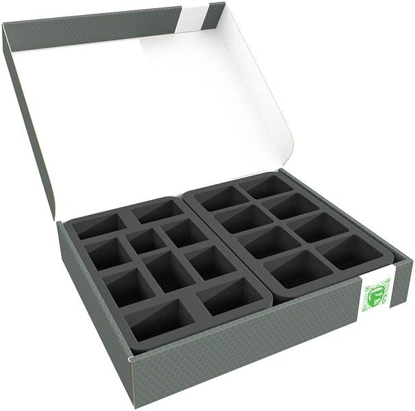 In the depths of space, it is best to travel well secured in a Feldherr Storage Box. This Storage Box FSLB055, filled with the custom Feldherr foam trays, offers space for all 16 warrior models of your Space Marine Boarding Parol.