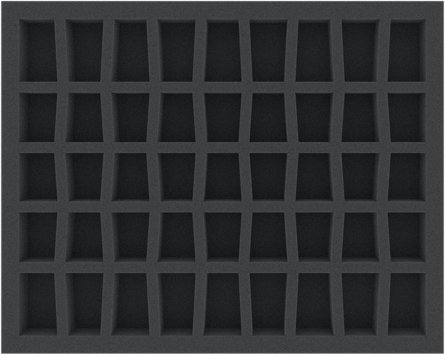 Thanks to the custom-fit cut, the miniatures have a firm fit. Even if the transport goes through the lawless badlands of a post-apocalyptic world, the figures remain in place. The soft, fine-pored foam protects delicate details from snapping off and the colors of your painted models from scratches and paint abrasion.