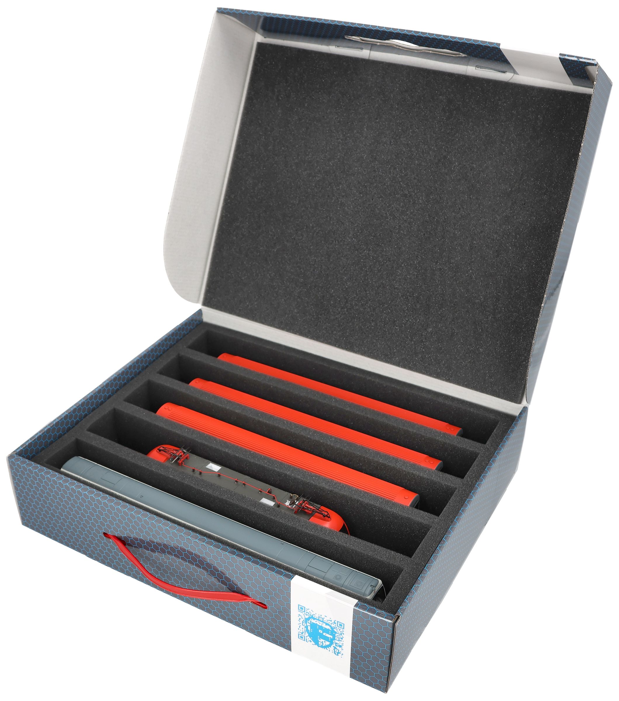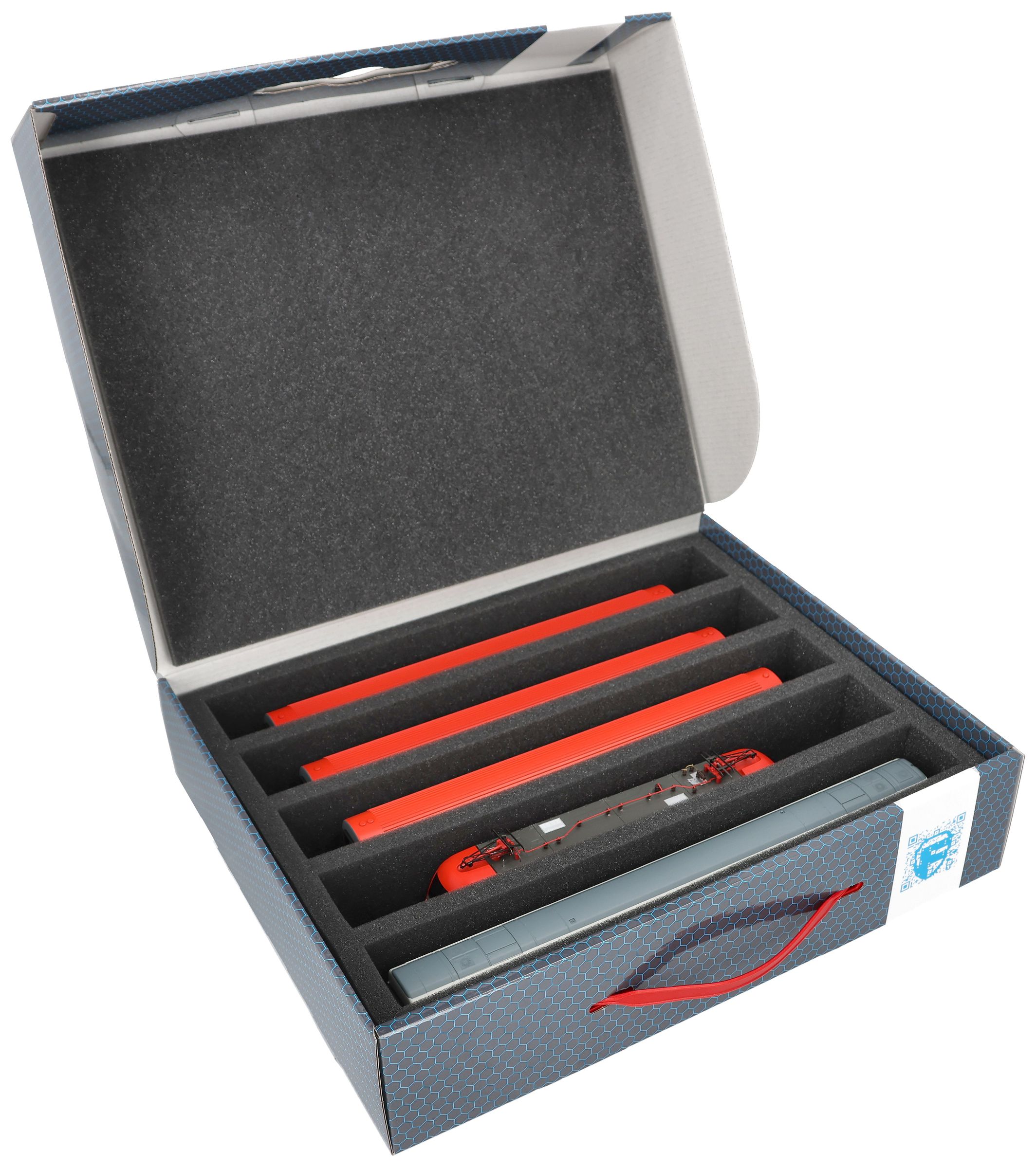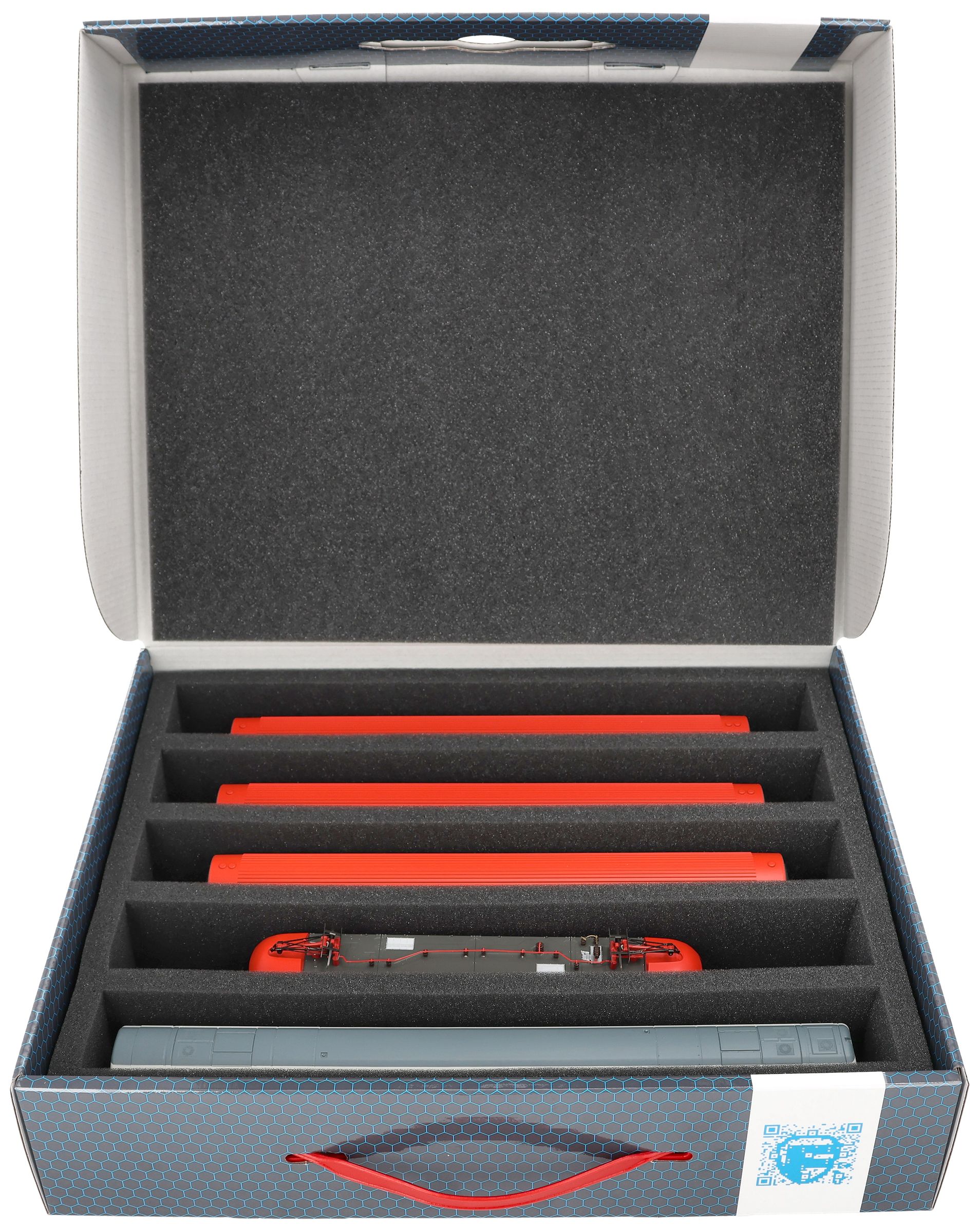 The models are thus safely stored all around and permanently protected by the high-quality foam against damage and wear and tear such as scratches and flaking paint.