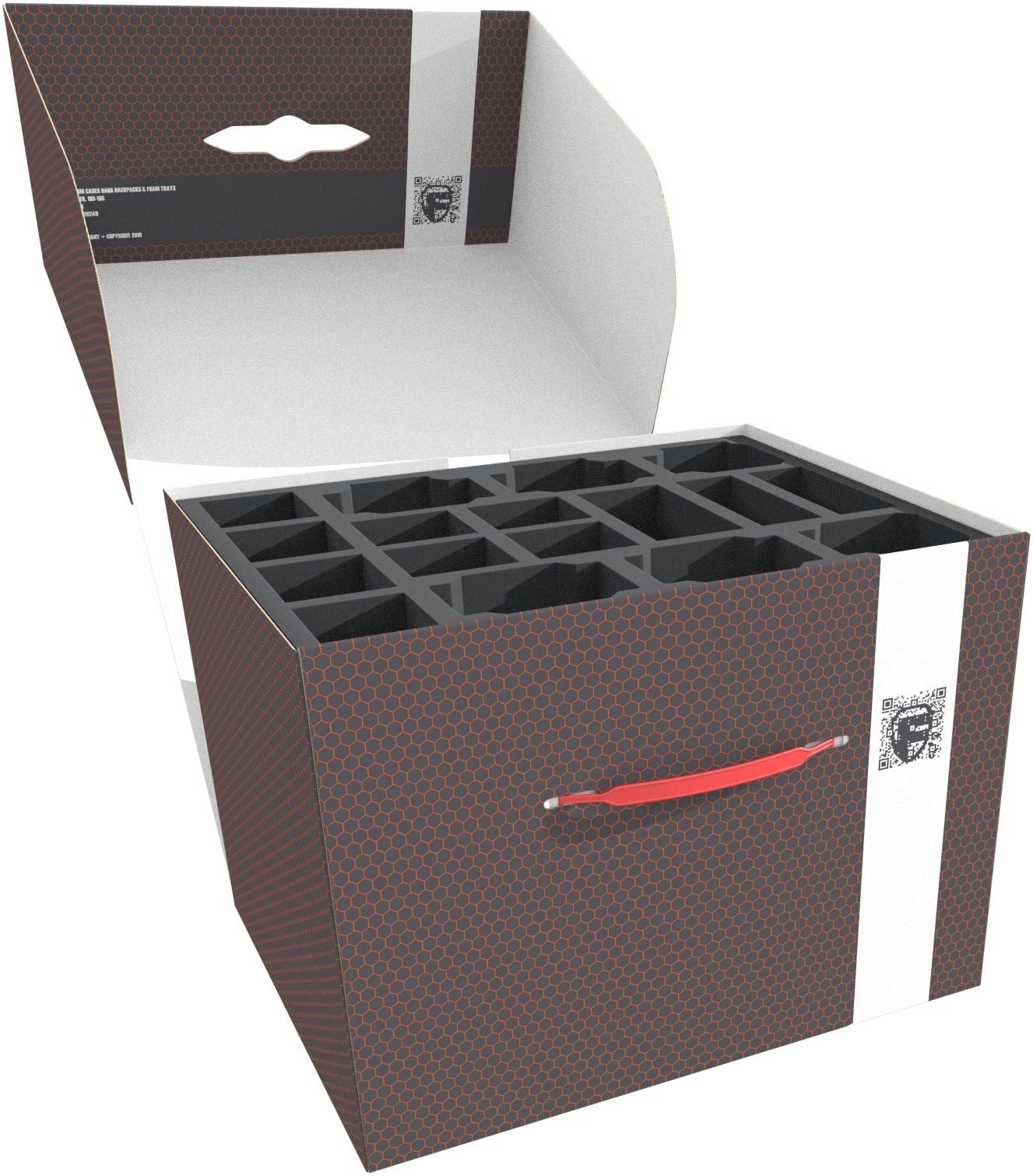 The Storage Box FSLB250 is made of coated, double-walled cardboard. This makes it not only pleasantly light, but also particularly tear-resistant and stable. With the matching foam trays, miniatures and game material can be stored safely and dust-protected and can also be transported effortlessly with the plastic carrying handle.