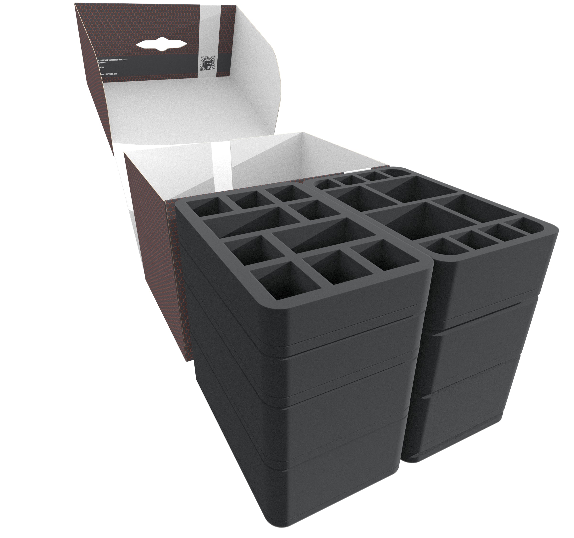 Up to 5 miniatures of the Necrons will find a safe place in this Feldherr Half-Size foam tray. The different sized compartments are ideal for keeping both larger miniatures like a Canoptek Reanimator and standard models neatly organized and well protected.