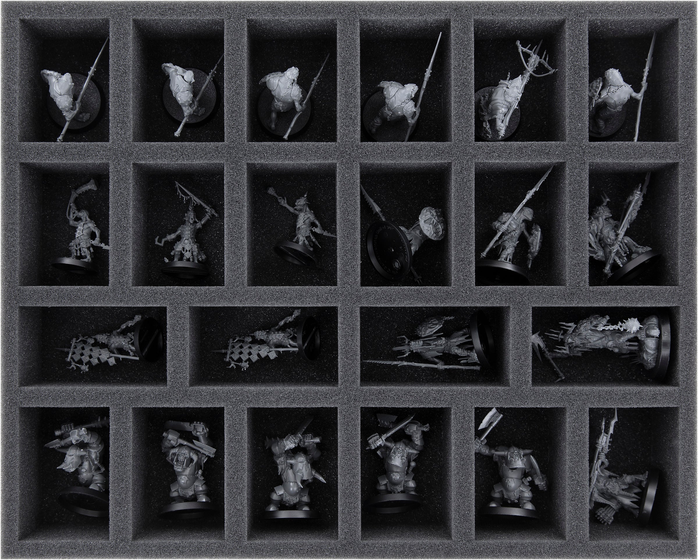 - 2 Half-Size foam trays with 20 compartments for e.g. Warchanter, Orruk Ardboys, Standard Bearer (HSMEFF045BO)