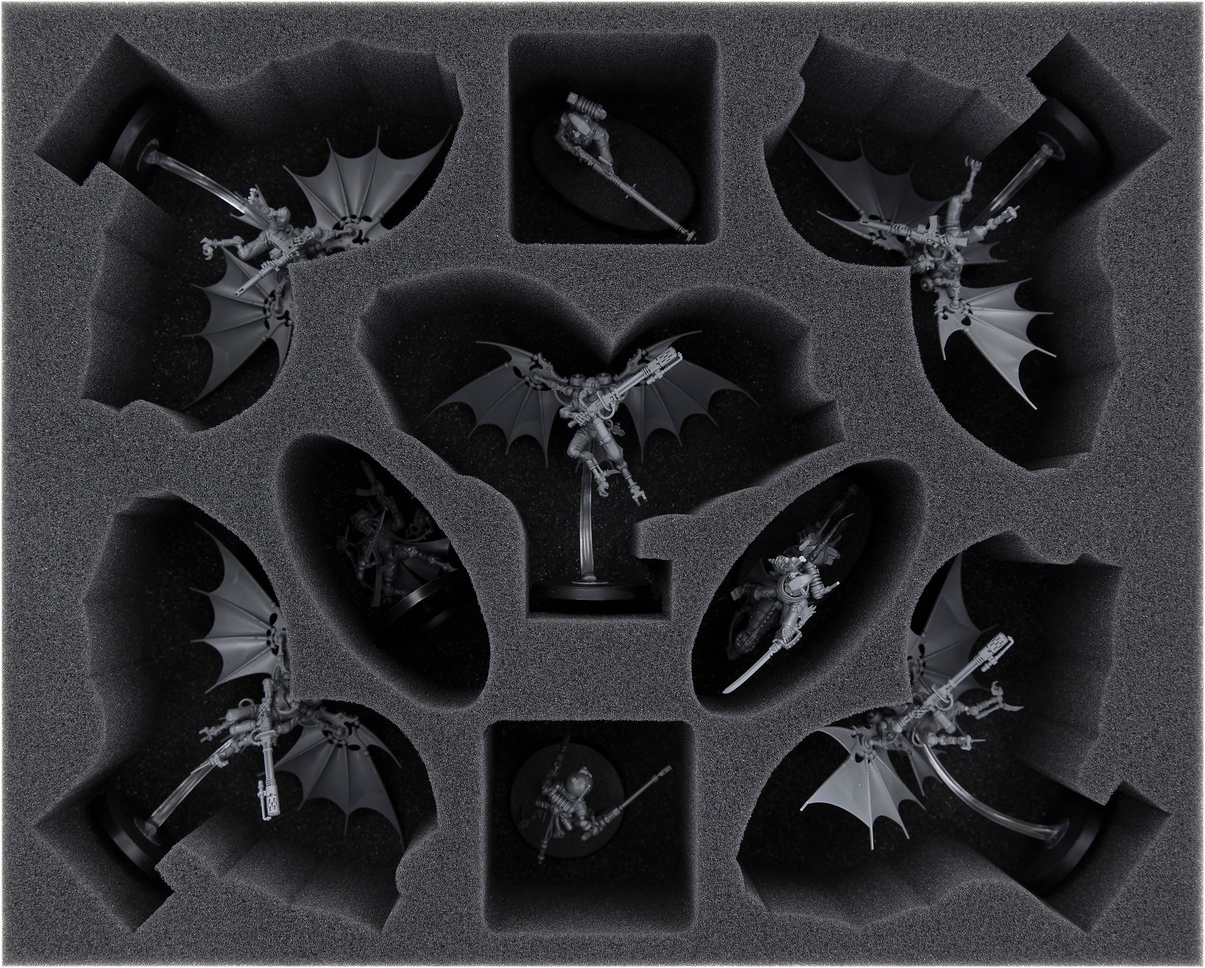 - 1 Full-Size foam tray with five miniature-precisely cut compartments for Pteraxii Skystalkers, Pteraxii Sterylizors, four additional compartments for Serberys Raiders, Sulfurhounds, and similar-sized models (FSMEXU075BO)