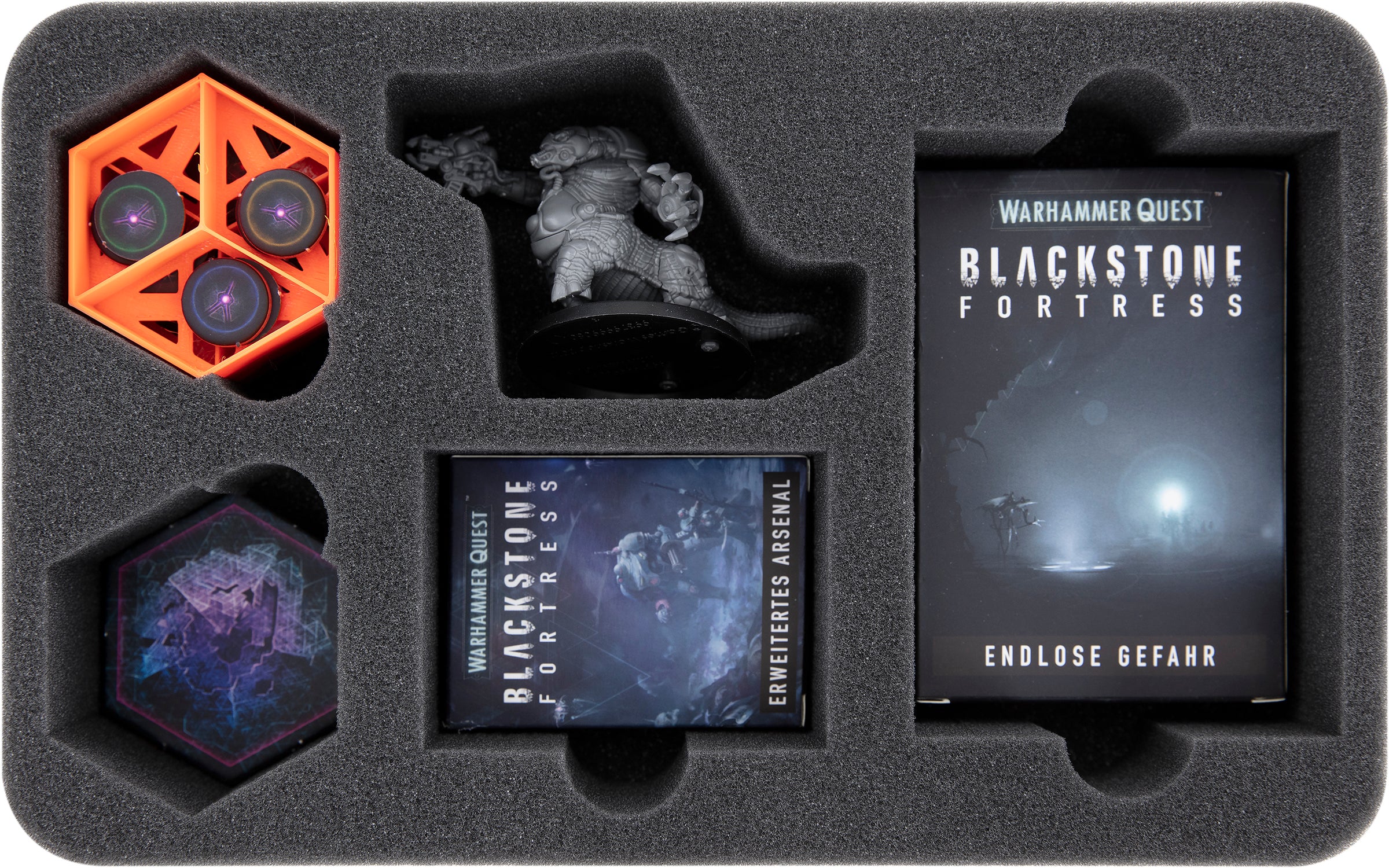 - The foam set fits exactly into the original GamesWorkshop board game box for "Warhammer Quest: Blackstone Fortress".