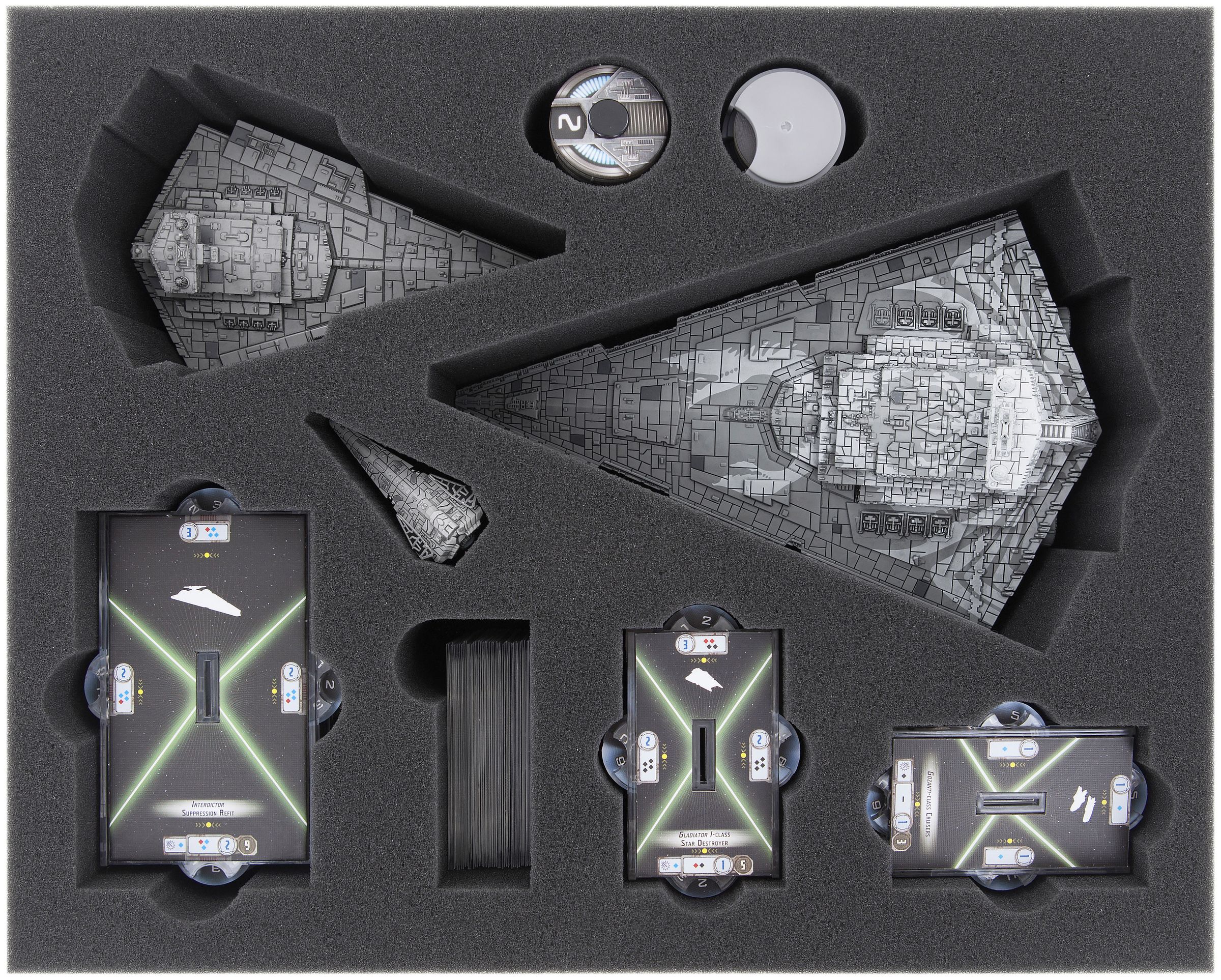 - 2 compartments for 2 large bases, e. g. Home One and/or Imperial-Class Star Destroyer
