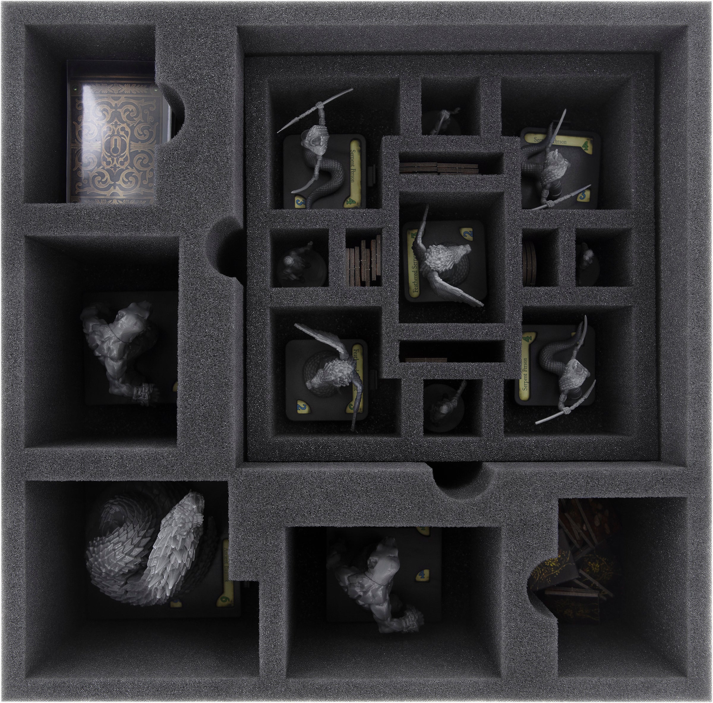 About time to clean up. We'd be happy to help you. With this Feldherr Storage Box bundle, you can neatly store all figures and accessories from the core game of the 2nd edition up to the "Path of the Serpent" expansion.