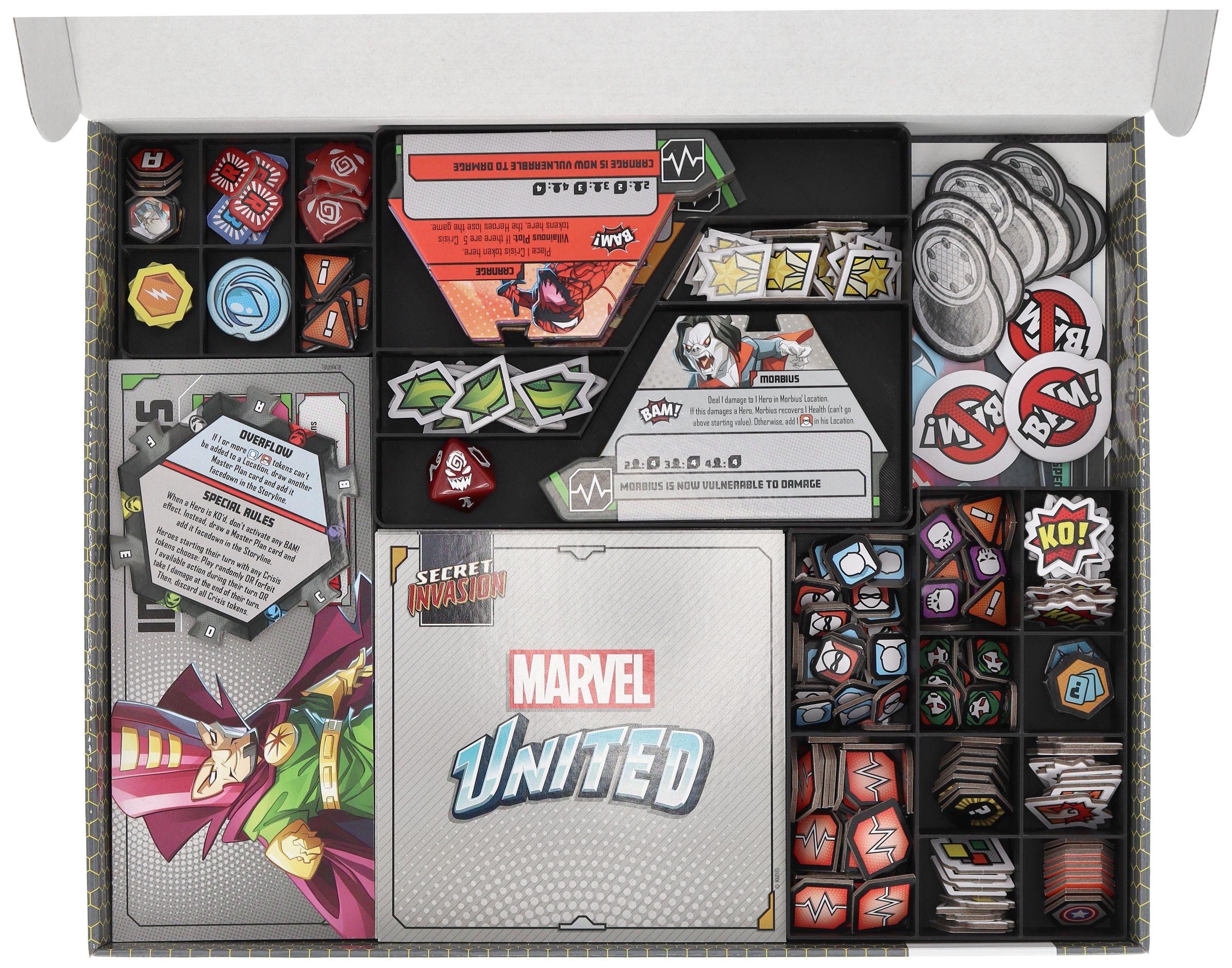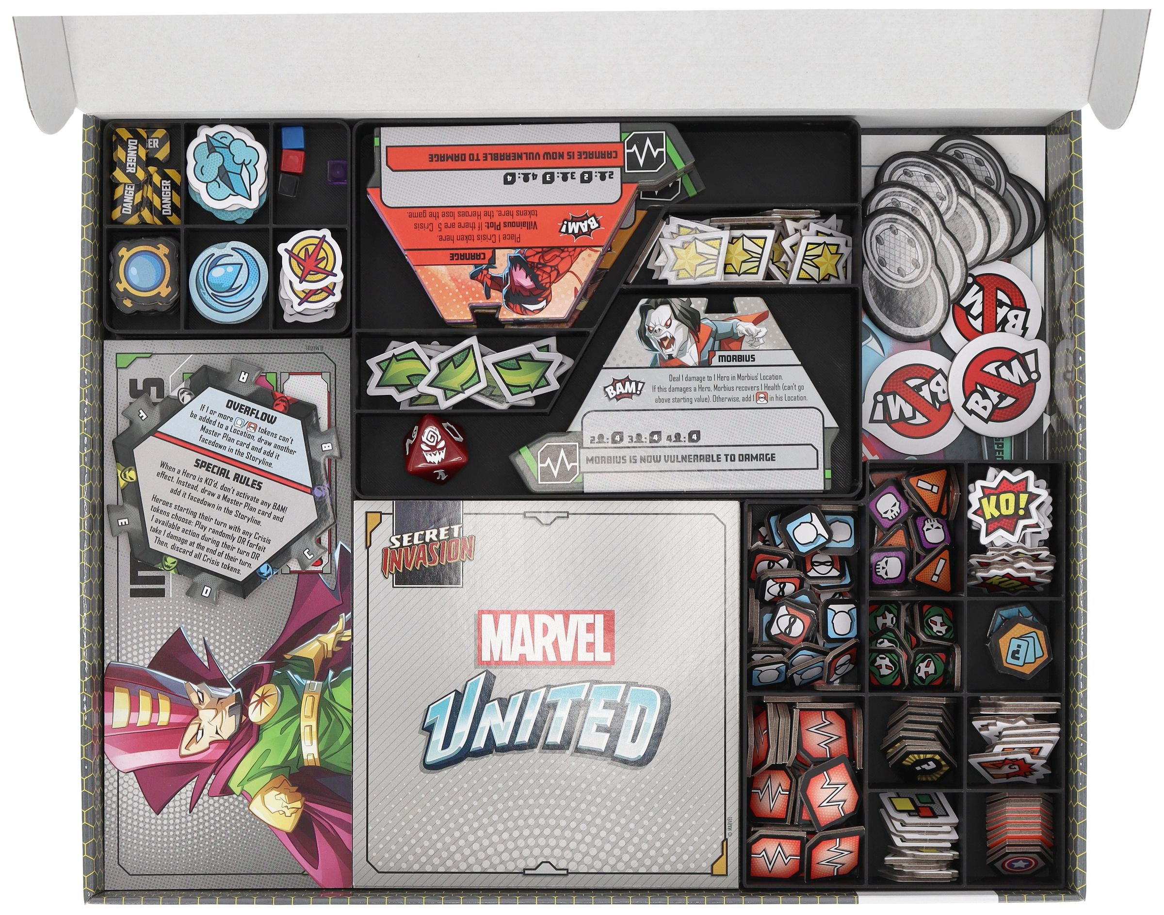 Lucky you, because we are prepared for this not-so-Secret Invasion. And now you are too. Here's the matching Feldherr Storage Box bundle including custom foam inserts and organizer solutions for all your Marvel United miniatures, game cards and all the accessories from the Omniverse Pledge.